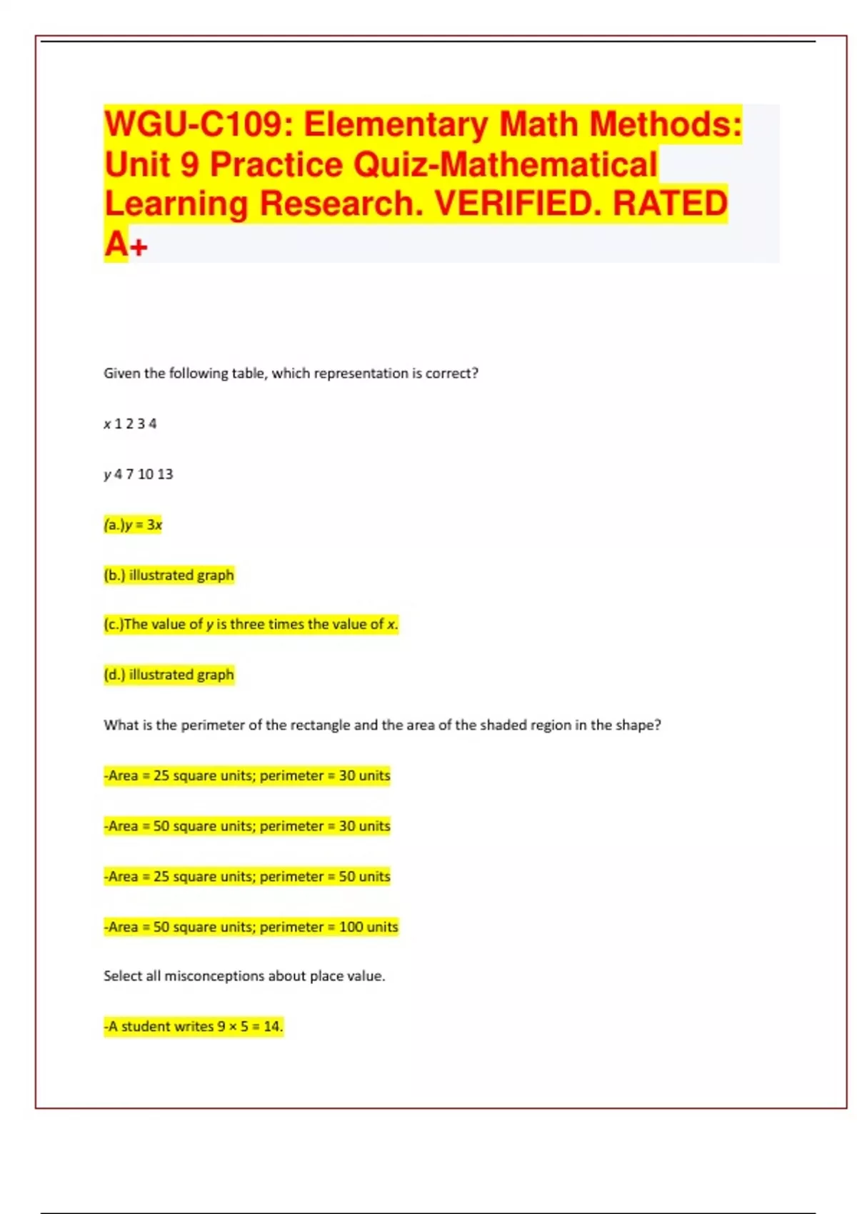 WGU-C109: Elementary Math Methods: Unit 9 Practice Quiz-Mathematical Learning Research. VERIFIED. RATED A+ 2024