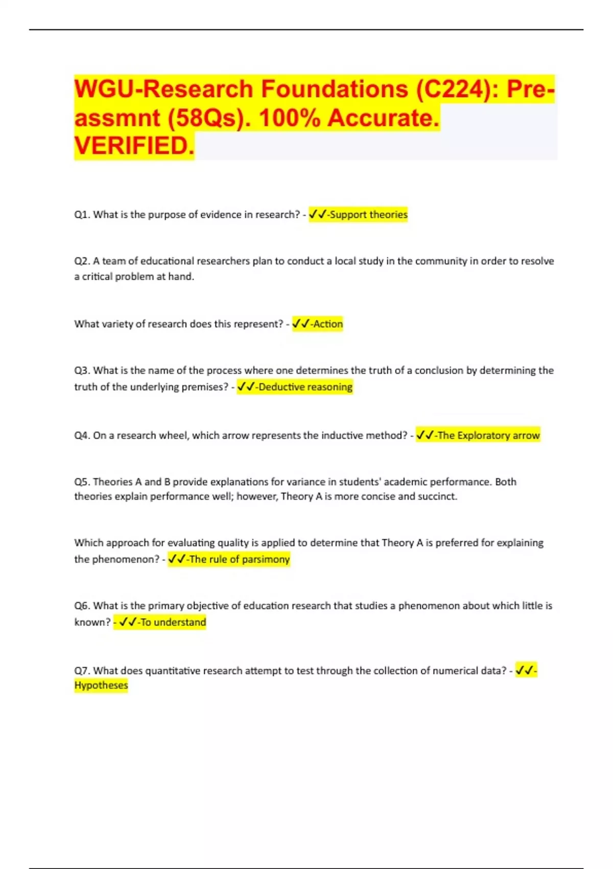 WGU-Research Foundations (C224): Pre assessment (58Qs). 100% Accurate. VERIFIED 2024