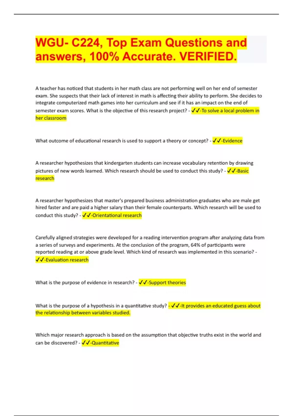 WGU- C224, Top Exam Questions and answers, 100% Accurate. VERIFIED 2024