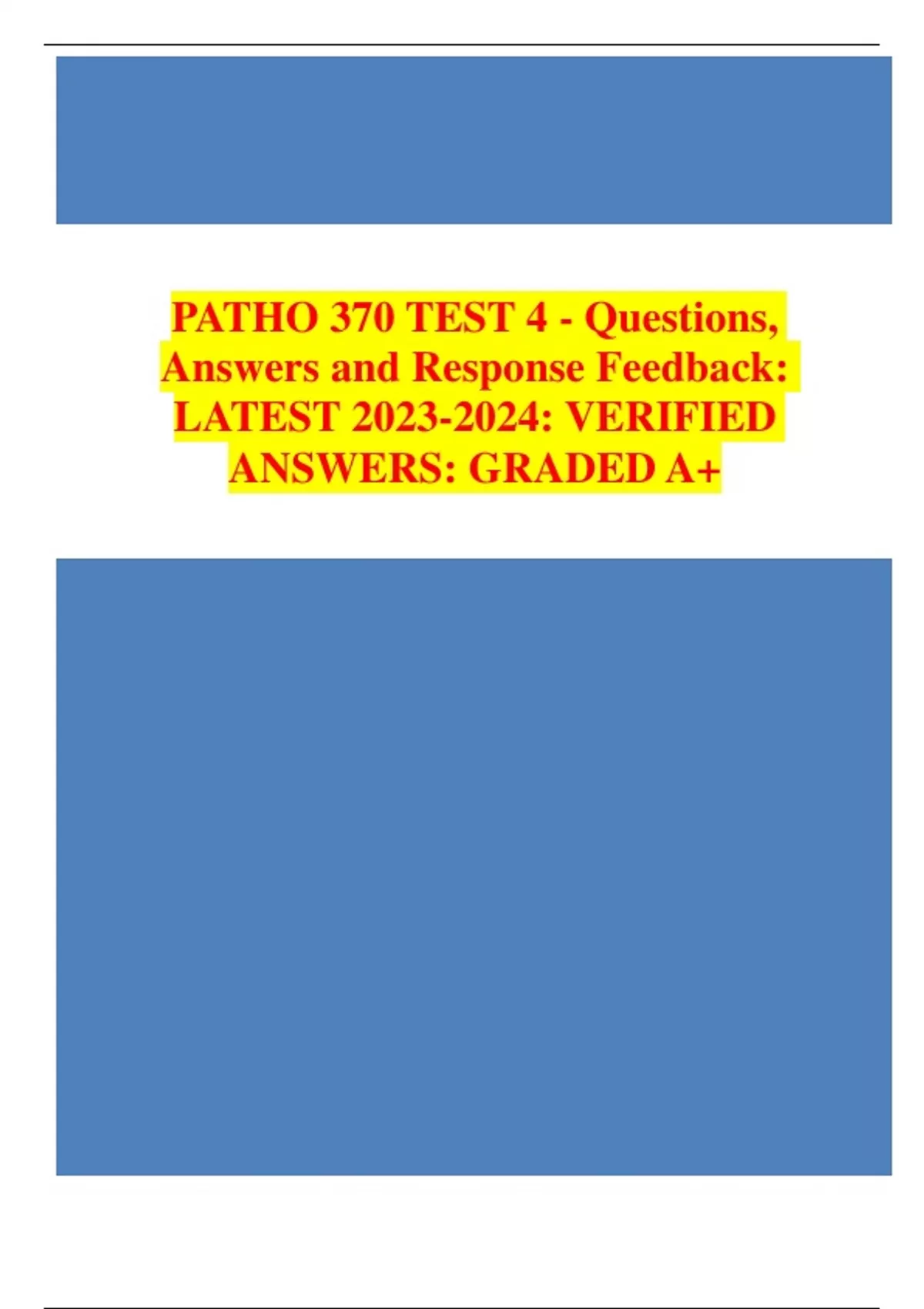PATHO 370 TEST 4 - Questions, Answers and Response Feedback|PATHO 370 TEST 4 - Questions, Answers and Response Feedback|PATHO 370 TEST 4 - Questions, Answers and Response Feedback
