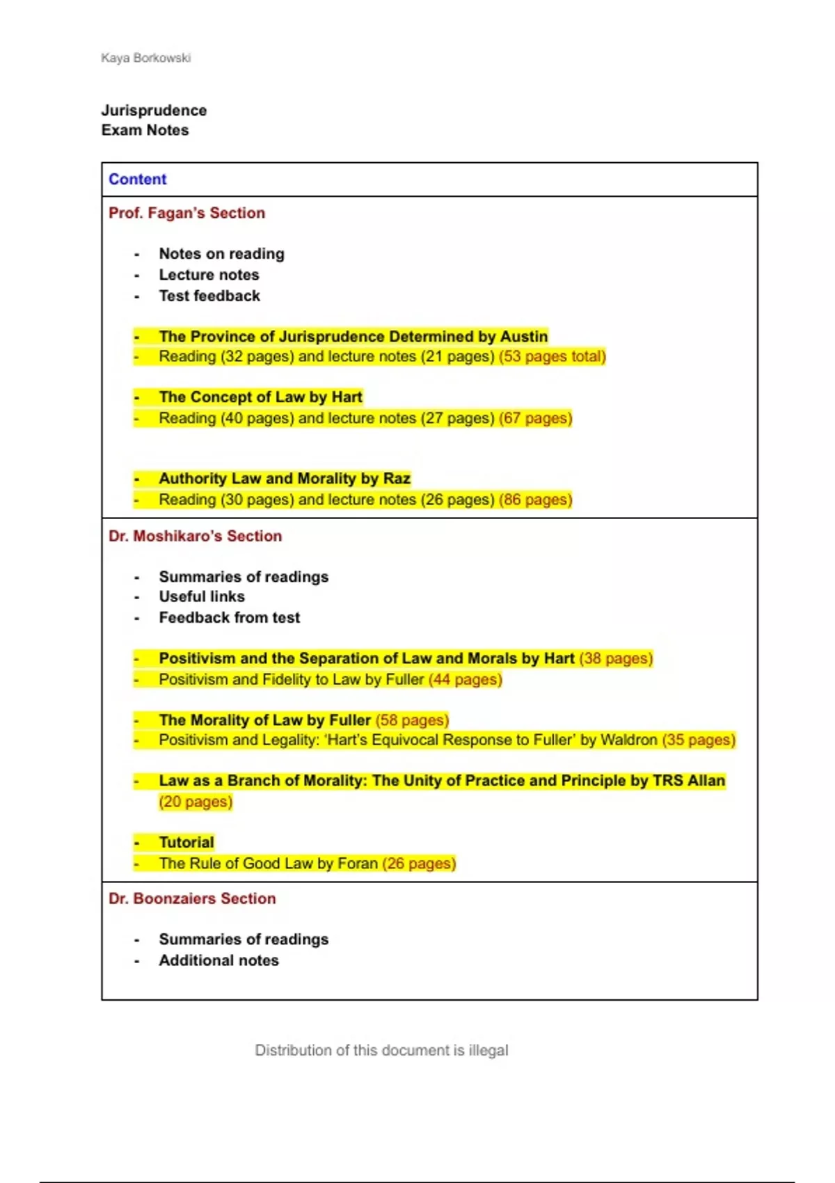 - summaries of 19 readings - Extra notes - Useful links and videos - Test feedback - suggested outlines for the 2 essays as well as tips INCLUDES: - The Province of Jurisprudence Determined by Austin -The Concept of Law by Hart -Authority Law and Morality by Raz -Positivism and the Separation of Law and Morals by Hart -The Morality of Law by Fuller - Law as a Branch of Morality: The Unity of Practice and Principle by TRS Allan - The Rule of Good Law by Foran - Thinking Like a Lawyer by Schauer - Playing by the Rules by Schauer - ‘Positivism and the Separation of Law and Morals’ by Hart - ‘Positivism and Fidelity to Law—A Reply to Professor Hart’ by Fuller - 'Law and Value in Adjudication' in his The Authority of Law by Raz - Holocene Jurisprudence by Pottage - From Global to Anthropocenic Assemblages: Re-Thinking Territory, Authority and Rights in the New Climatic Regime by Daniel Matthews - ‘Critical Legal Realism in a Nutshell’ by Klare & Davis - Ngcukaitobi ‘The birth of constitutionalism’ - Madlingozi ‘South Africa’s first black lawyers’