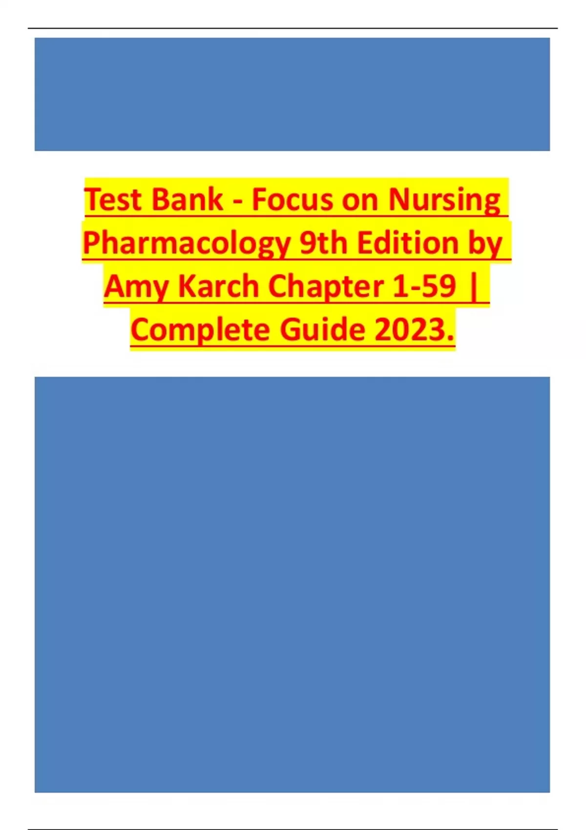Test Bank - Focus on Nursing Pharmacology 9th Edition by Amy Karch Chapter 1-59 | Complete Guide 2023.