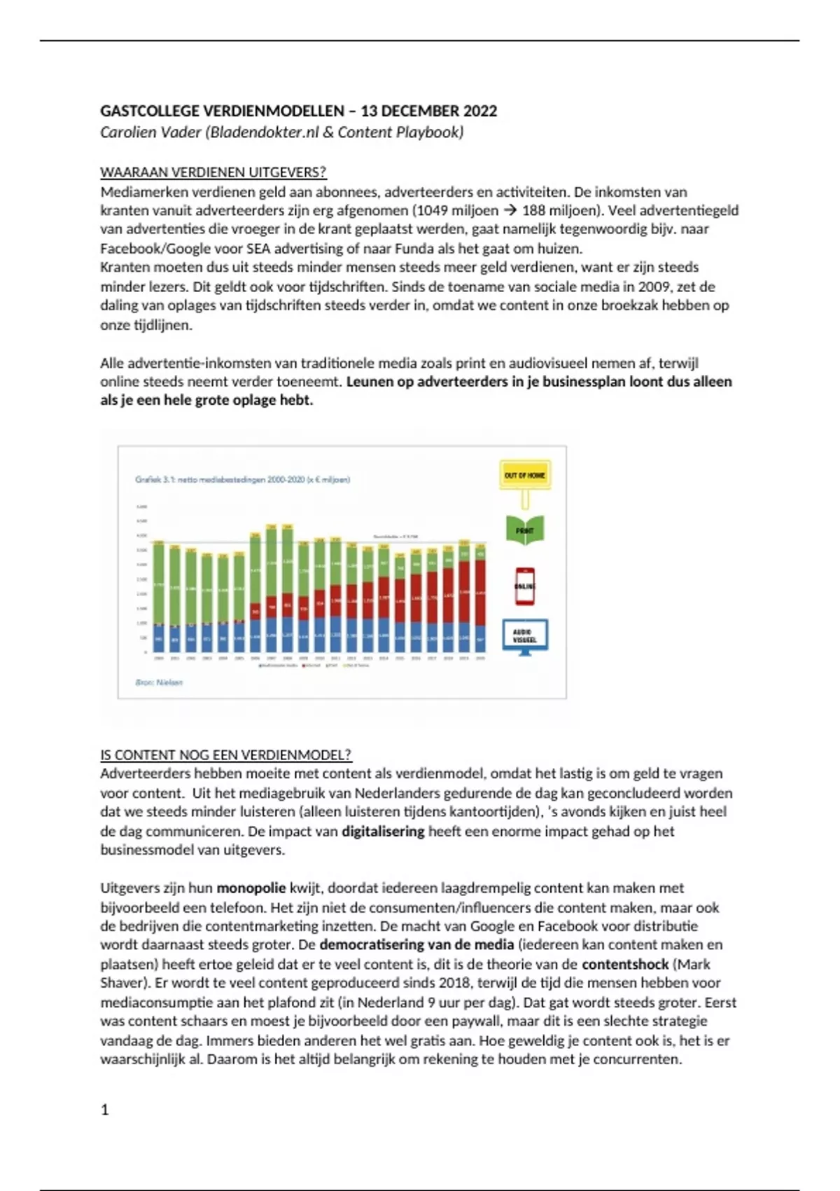 kranten vanuit adverteerders zijn erg afgenomen (1049 miljoen 188 miljoen). Veel advertentiegeld