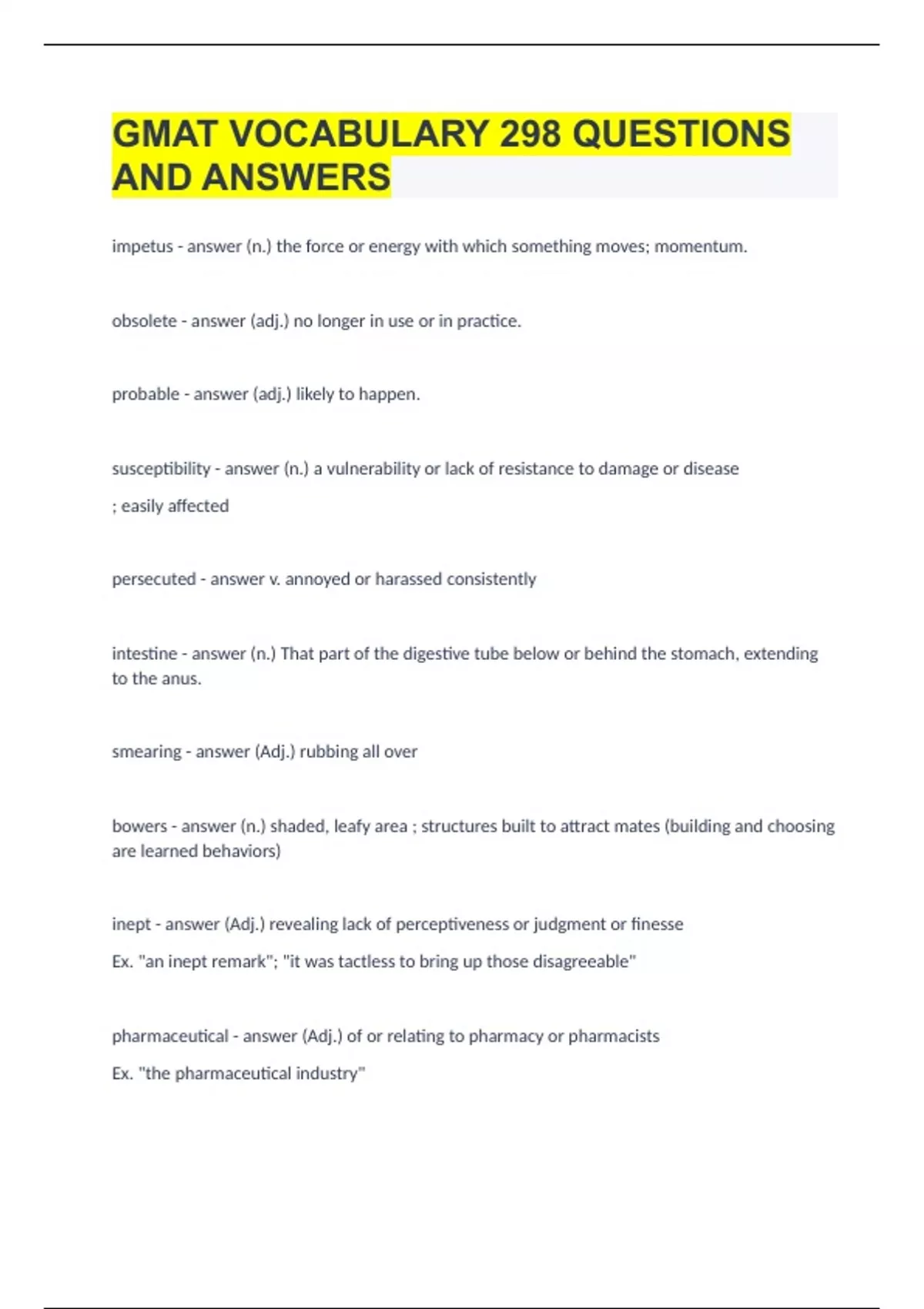 GMAT VOCABULARY |298 QUESTIONS AND ANSWERS