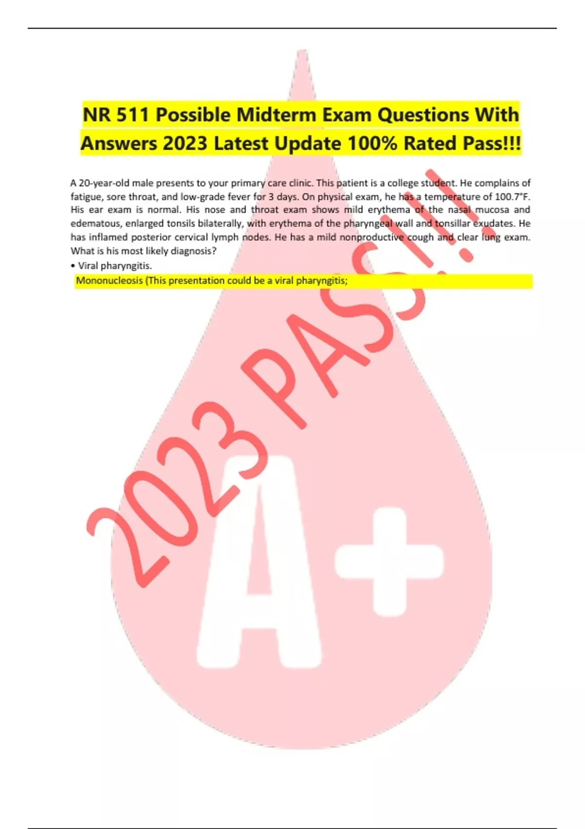 nr 511 possible midterm exam questions with answer