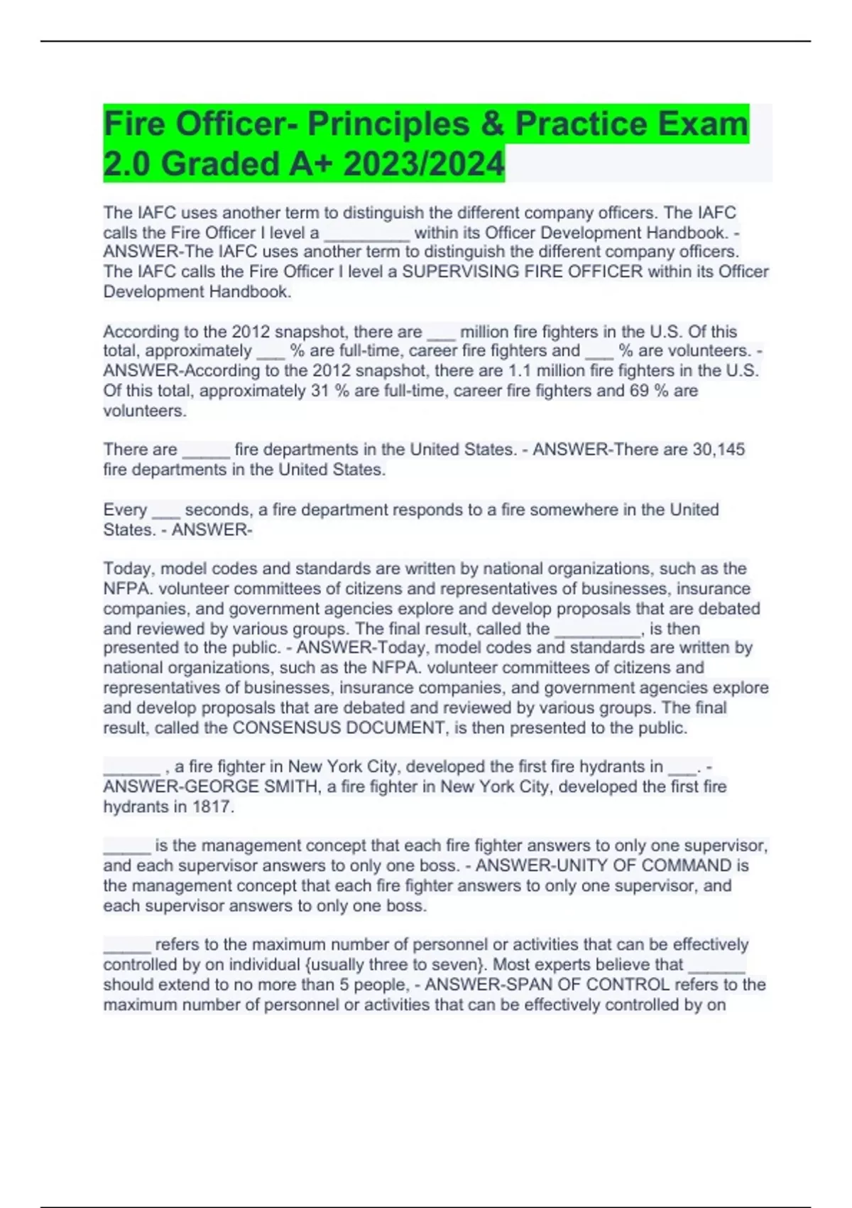 Fire Officer- Principles & Practice Exam 2.0 Graded A+ 2023/2024