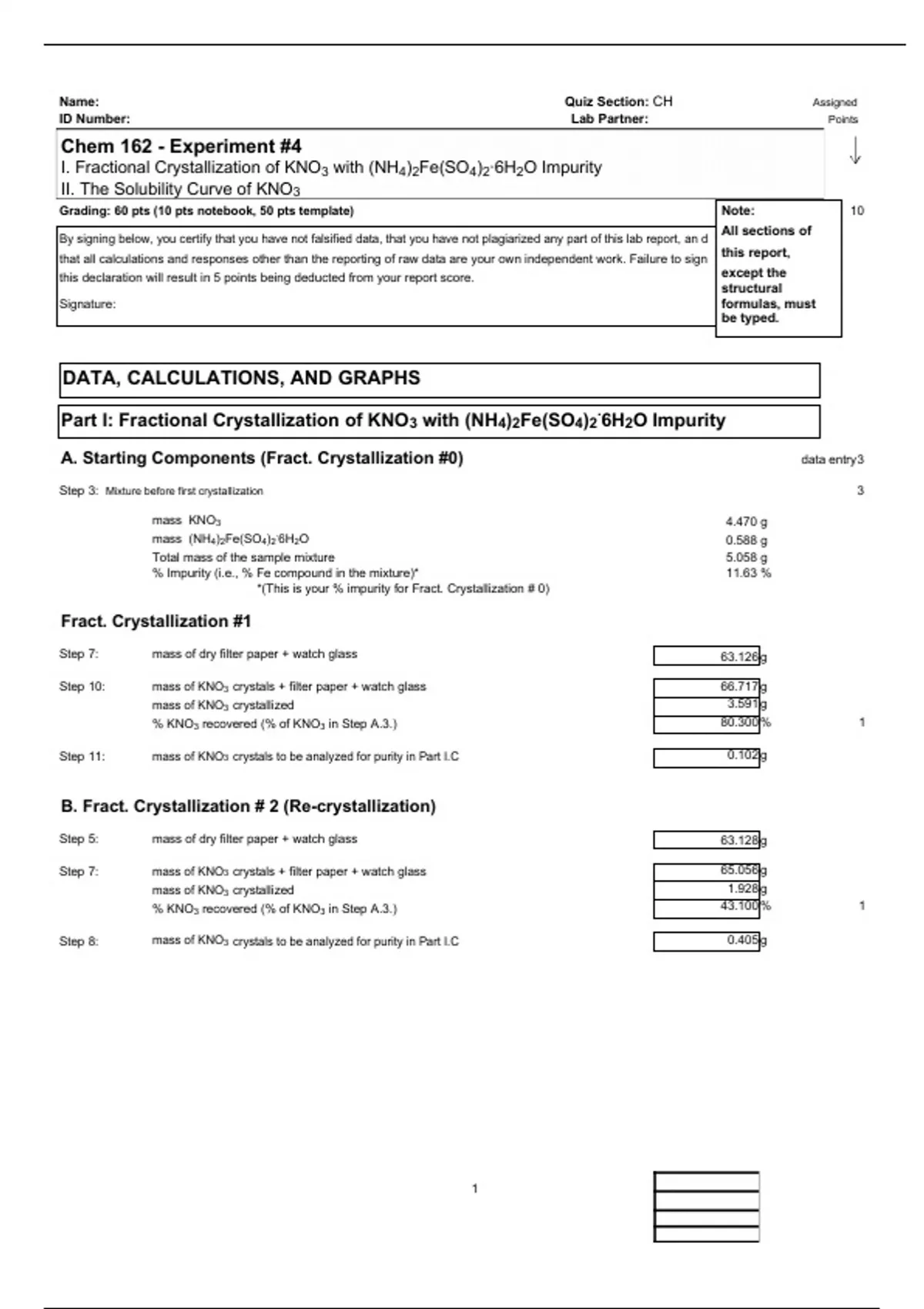 Chem 162 - Experiment #4 Complete Solution