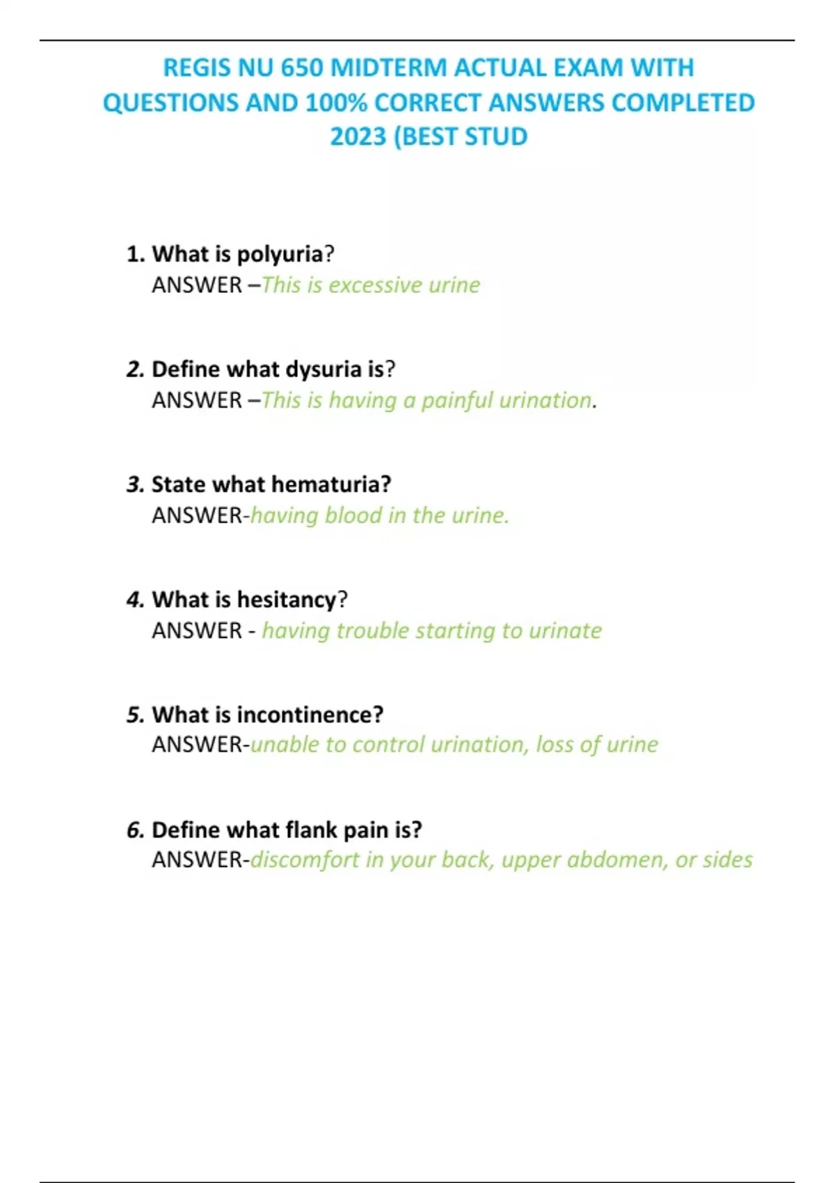 REGIS NU 650 MIDTERM ACTUAL EXAM WITH QUESTIONS AND 100% CORRECT ANSWERS COMPLETED 2023 (BEST STUDREGIS NU 650 MIDTERM ACTUAL EXAM WITH QUESTIONS AND 100% CORRECT ANSWERS COMPLETED 2023 (BEST STUDREGIS NU 650 MIDTERM ACTUAL EXAM WITH QUESTIONS AND 100% CORRECT ANSWERS COMPLETED 2023 (BEST STUDREGIS NU 650 MIDTERM ACTUAL EXAM WITH QUESTIONS AND 100% CORRECT ANSWERS COMPLETED 2023 (BEST STUD