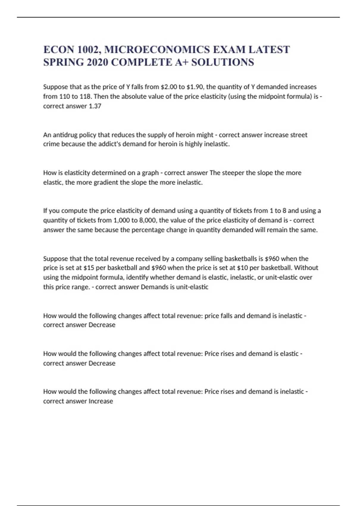 econ 1002 microeconomics exam latest spring 2020