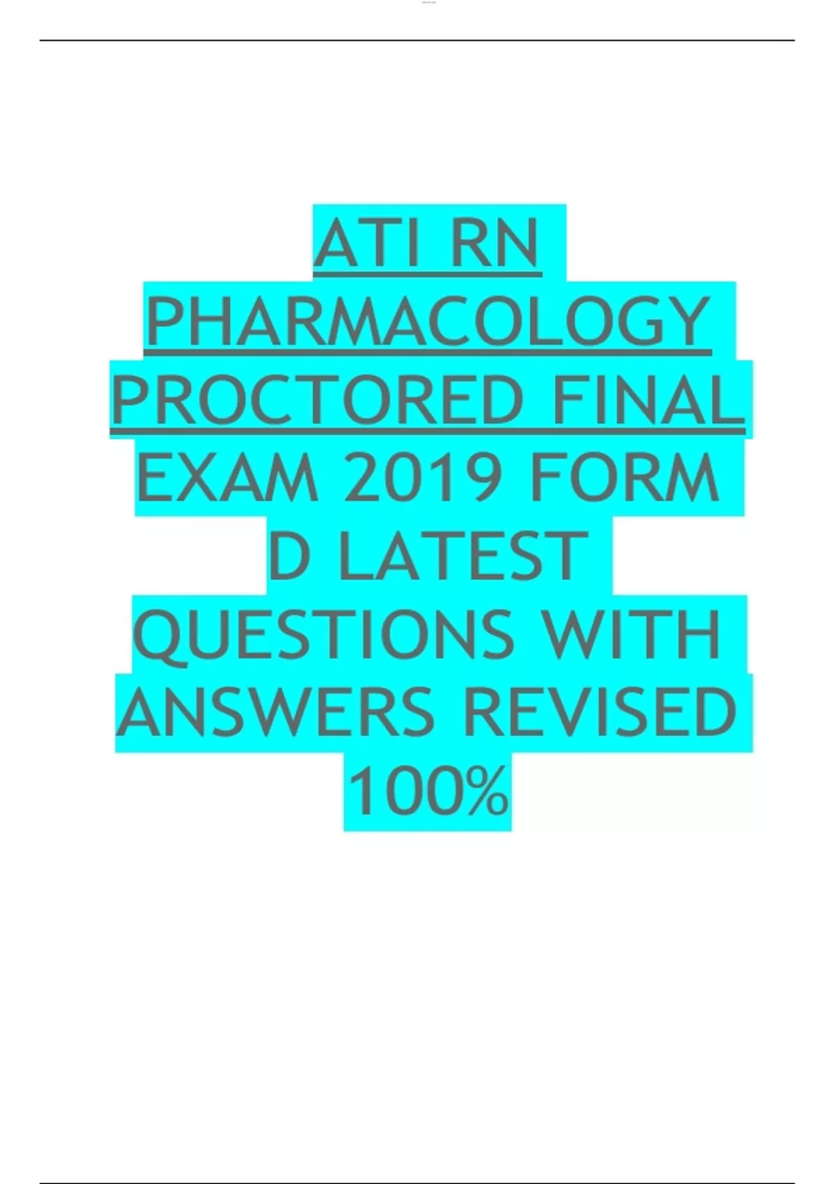 Ati Pharmacology Proctored Exam 2019 - Study Guide