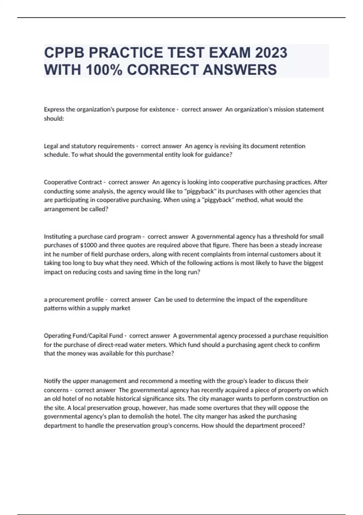 CPPB Multiple Choice Practice exam 2023 with 100% correct answers
