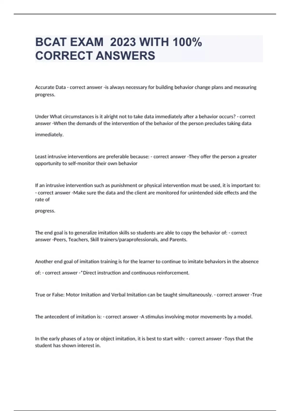 BCAT - FINAL EXAM 2023 WITH 100% CORRECT ANSWERS