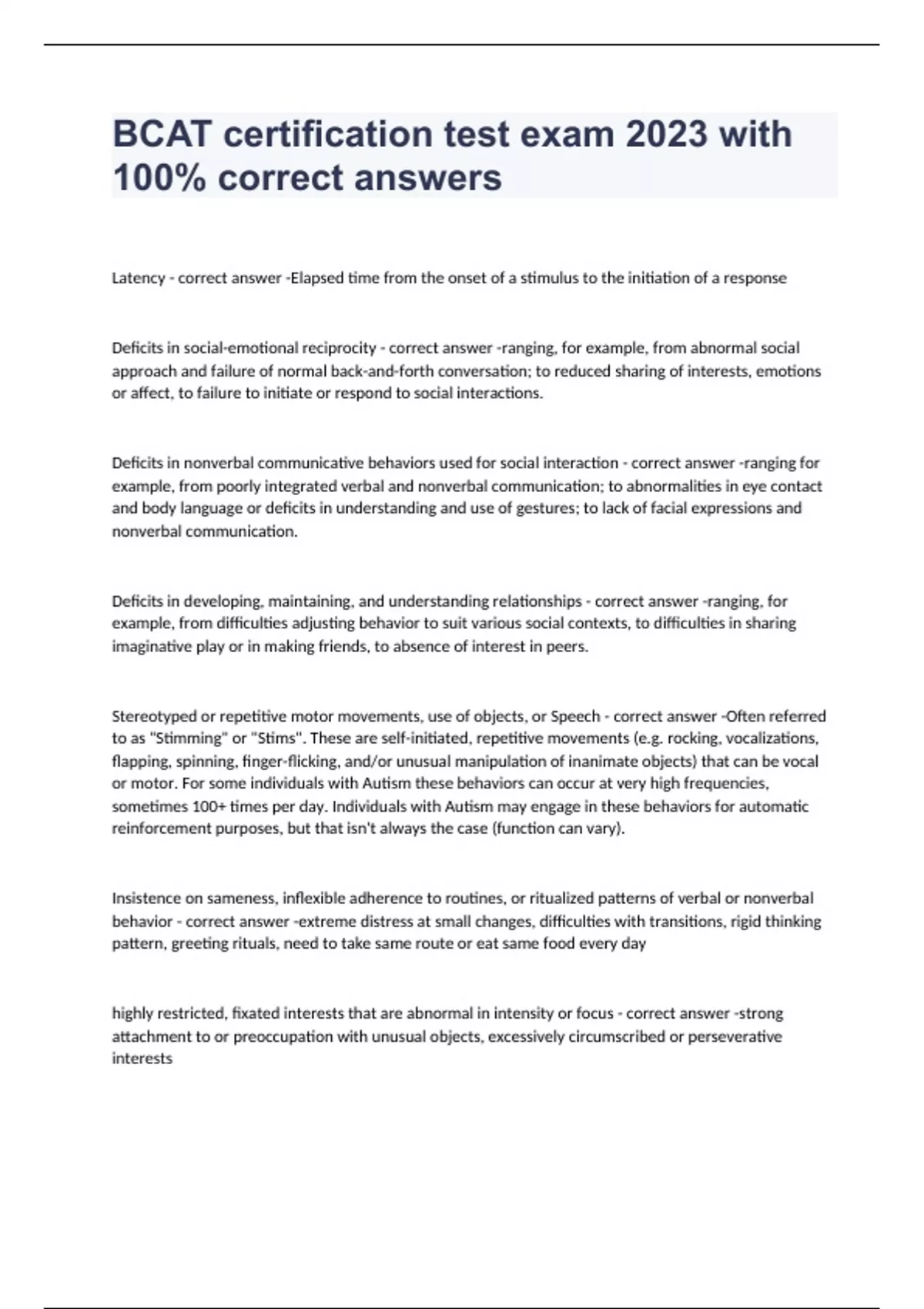 BCAT - Principles of ABA exam 2023 with 100% correct answers