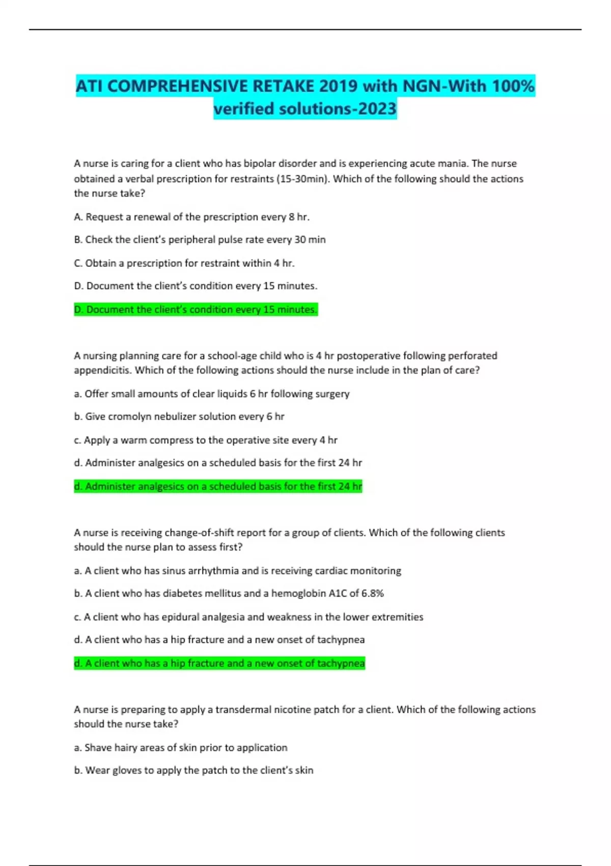ATI COMPREHENSIVE RETAKE 2019 with NGN-With 100% verified solutions-2023