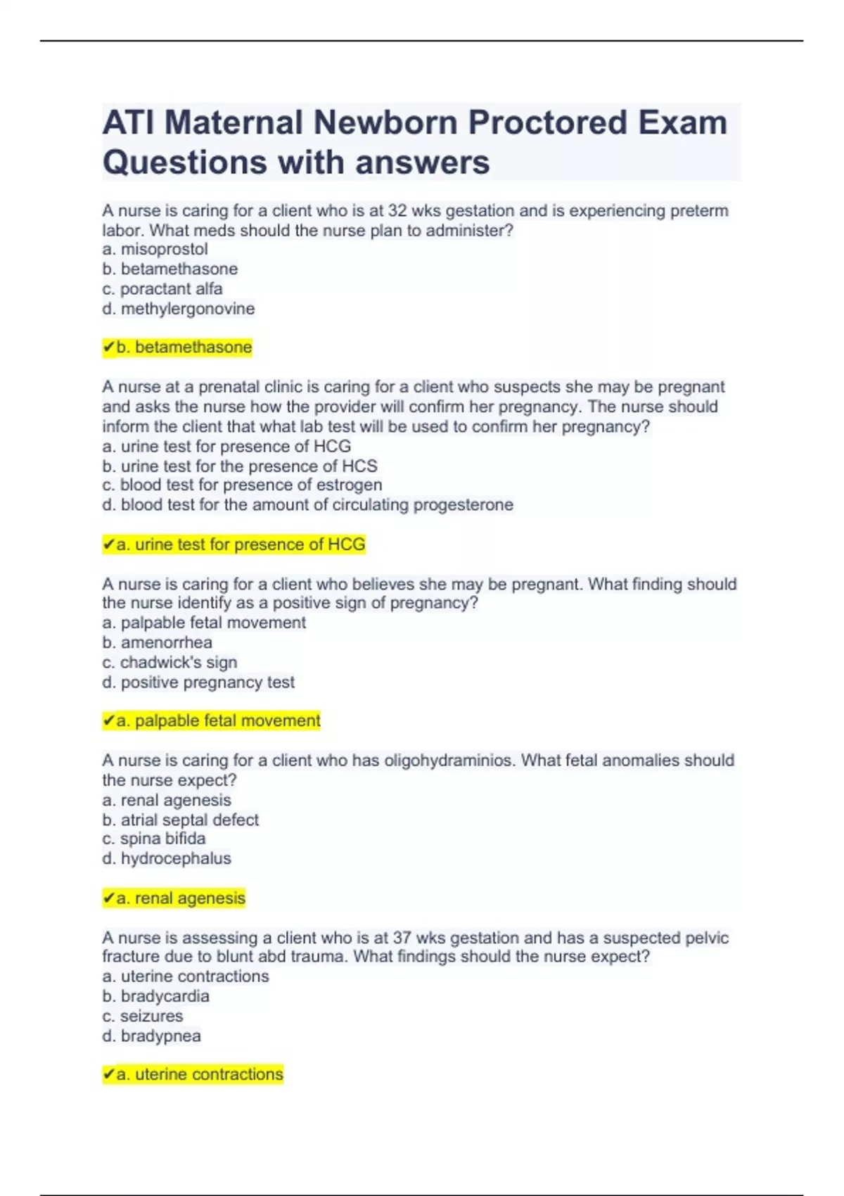 ATI Maternal Newborn Proctored Exam Questions with answers