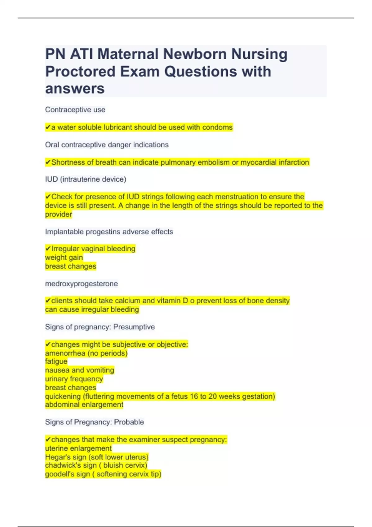 PN ATI Maternal Newborn Nursing Proctored Exam Questions with answer