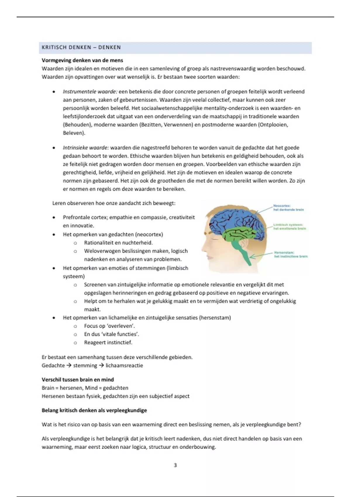 • Het opmerken van gedachten (neocortex)