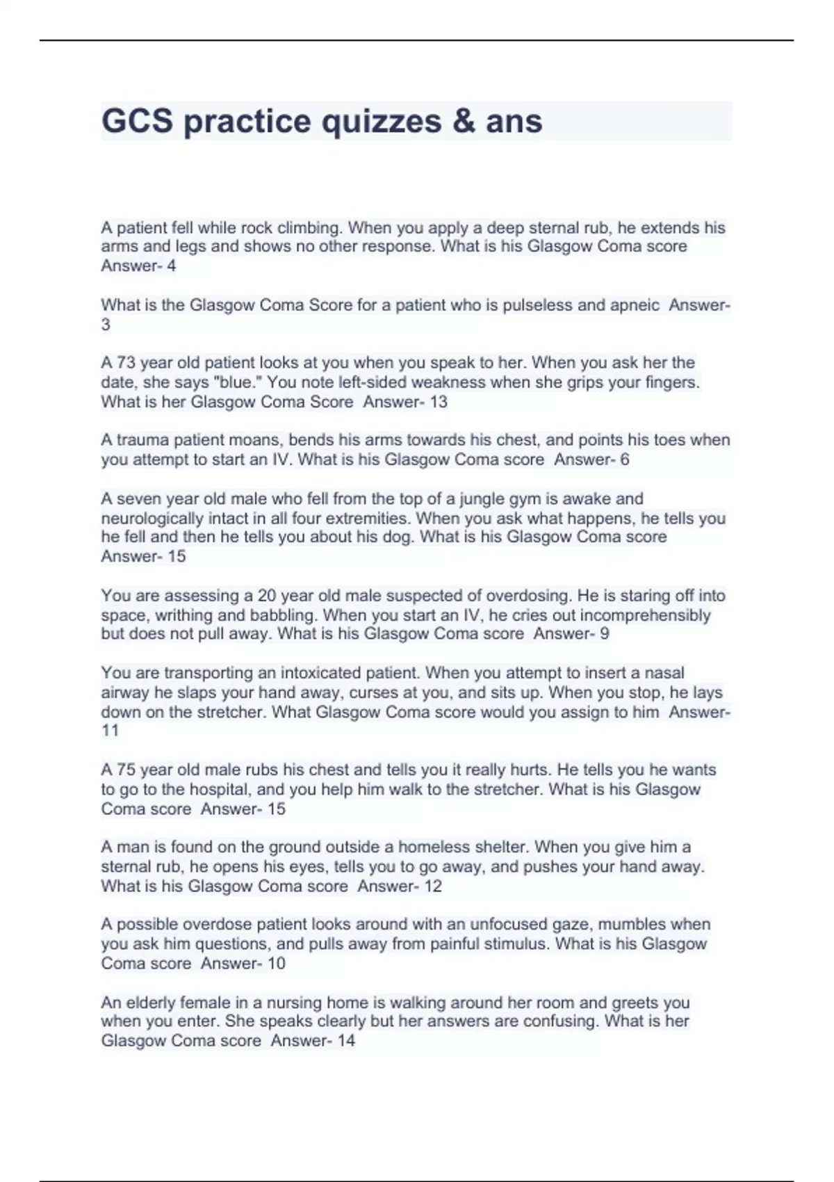 gcs practice quizzes ans