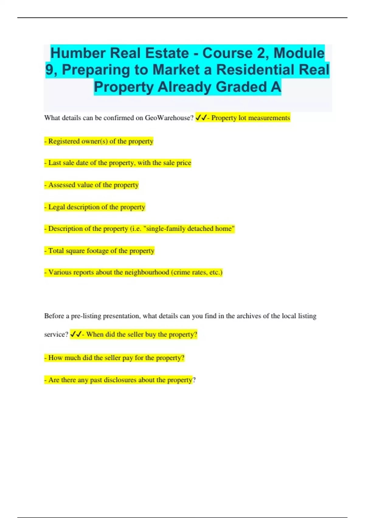 Humber Real Estate - Course 2, Module 9, Preparing to Market a Residential Real Property Already Graded A