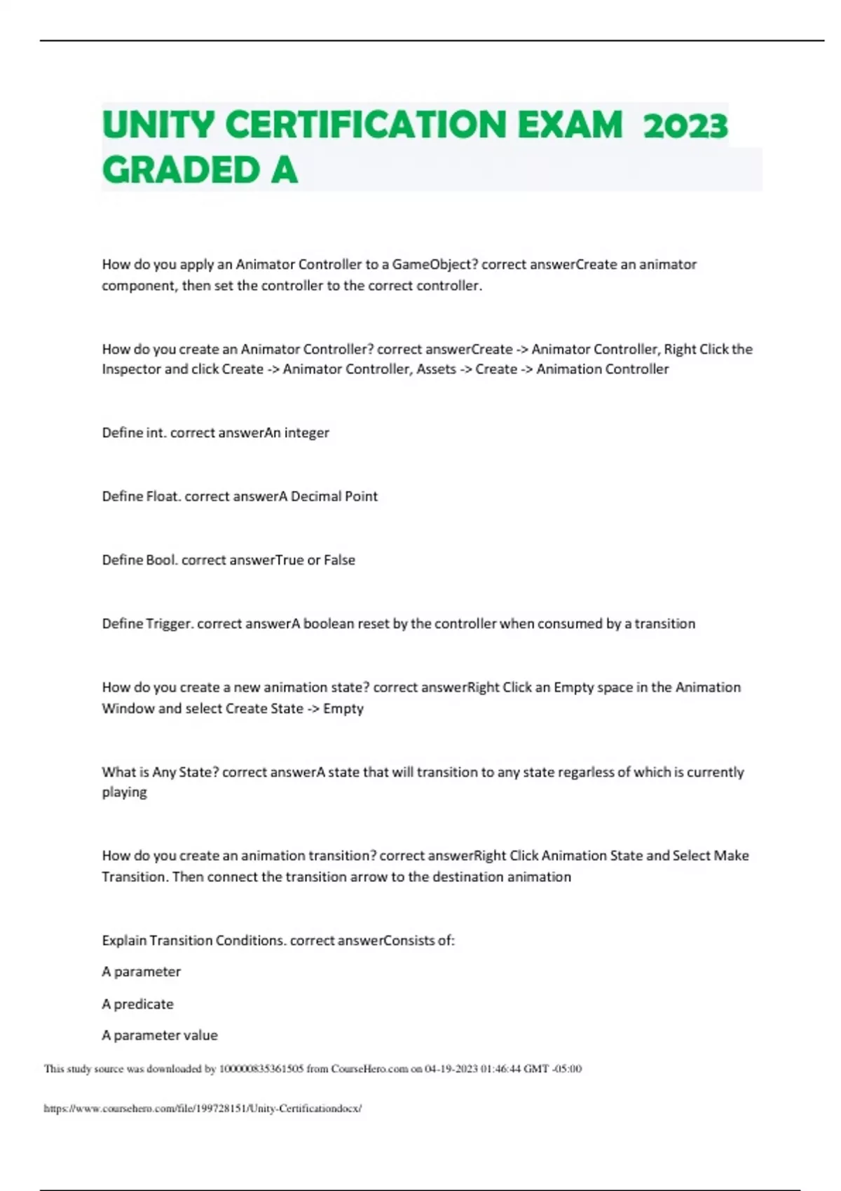 UNITY CERTIFICATION EXAM 2023 GRADED A