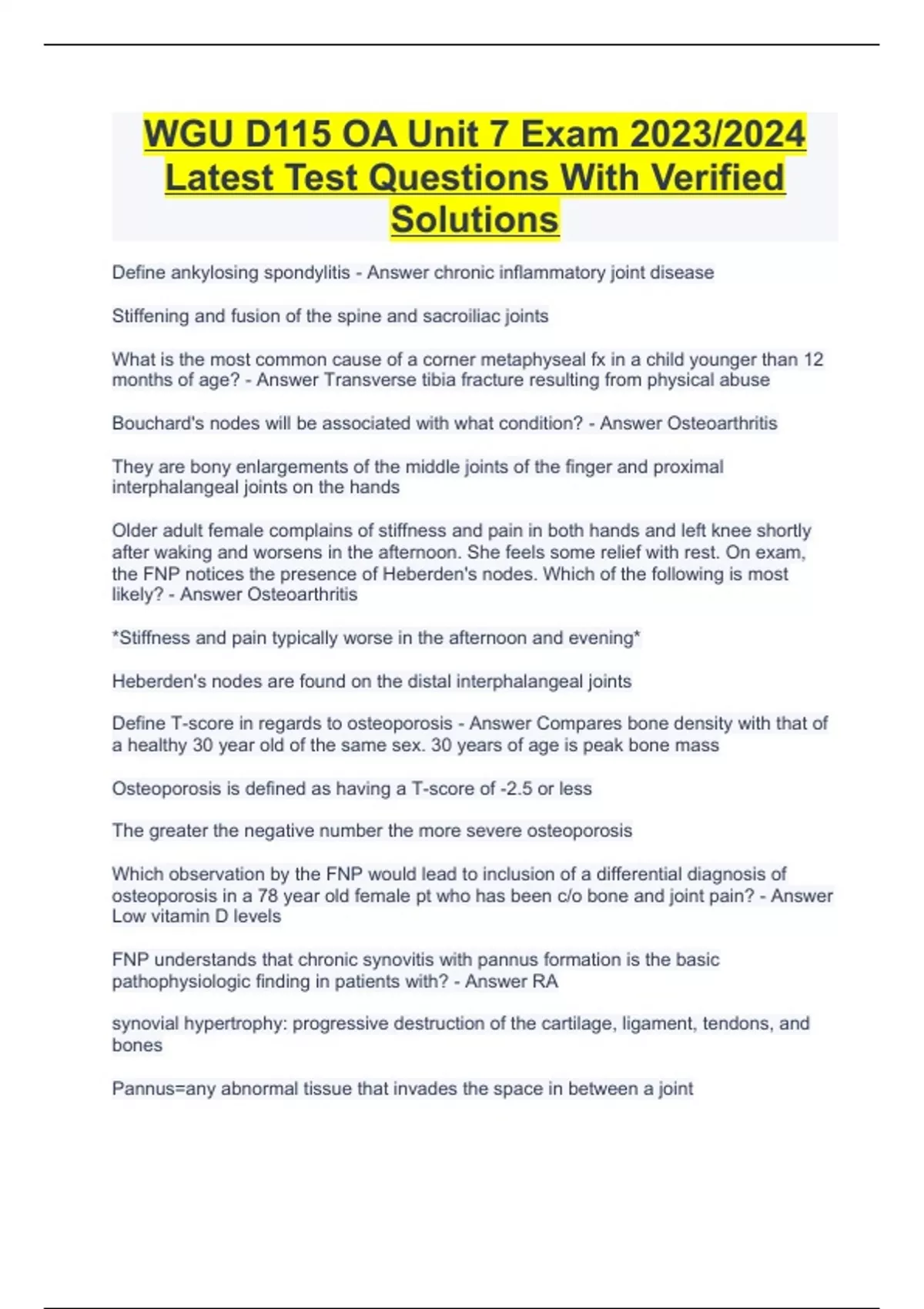 BUNDLE OF WGU D115 LATEST EXAMS
