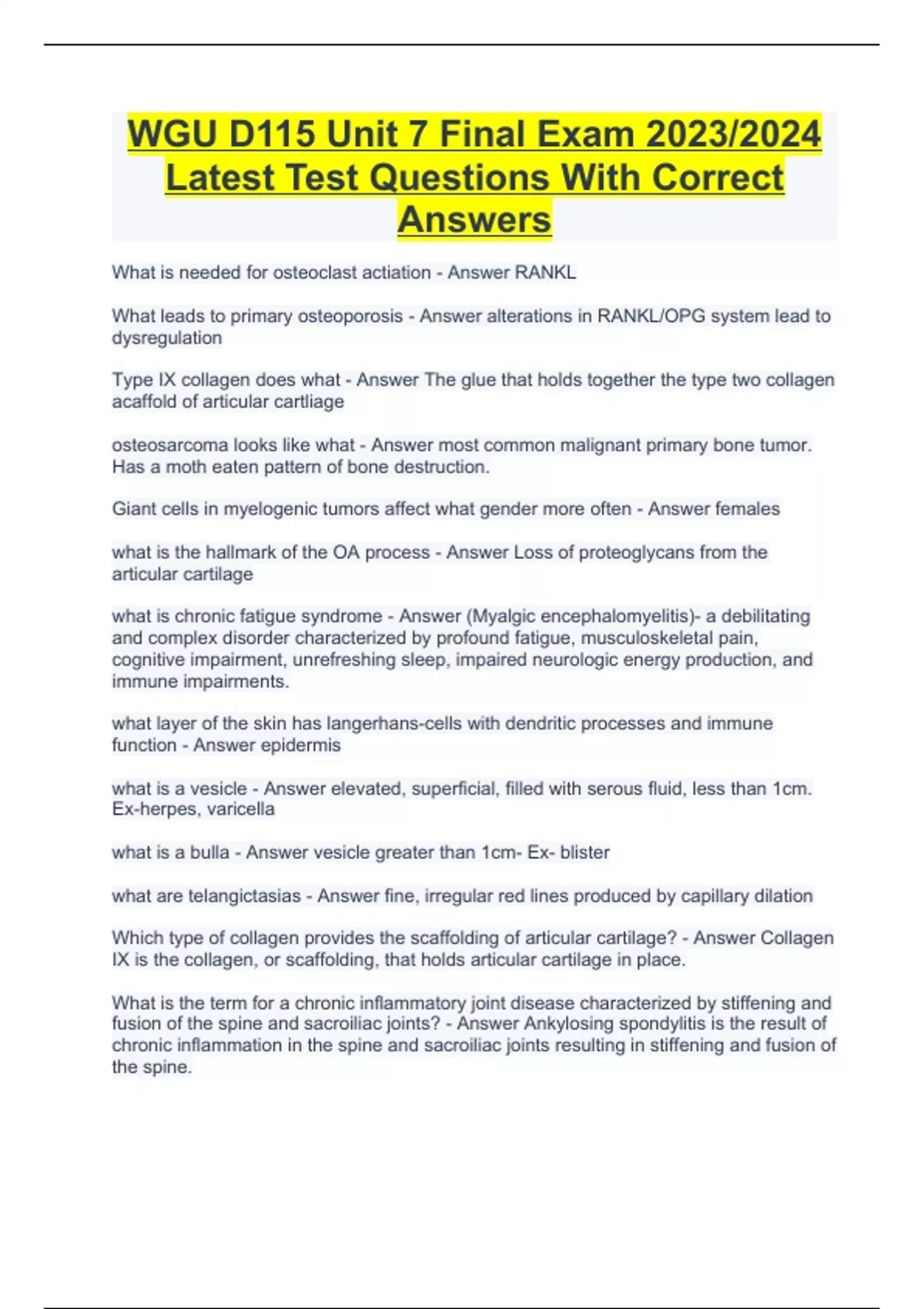 WGU D115 Unit 7 Final Exam 2023/2024 Latest Test Questions With Correct Answers