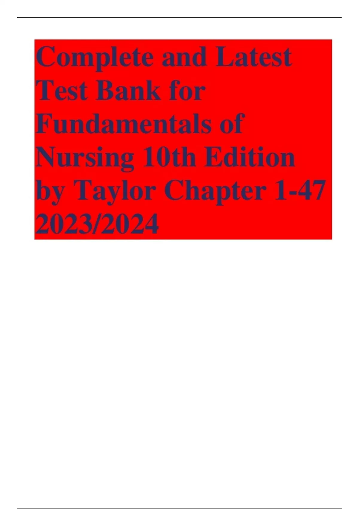 Complete and Latest Test Bank for Fundamentals of Nursing 10th Edition by Taylor Chapter 1-47 2023/2024