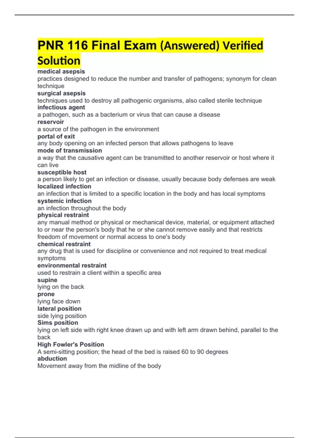 PNR 116 Final Exam (Answered) Verified Solution