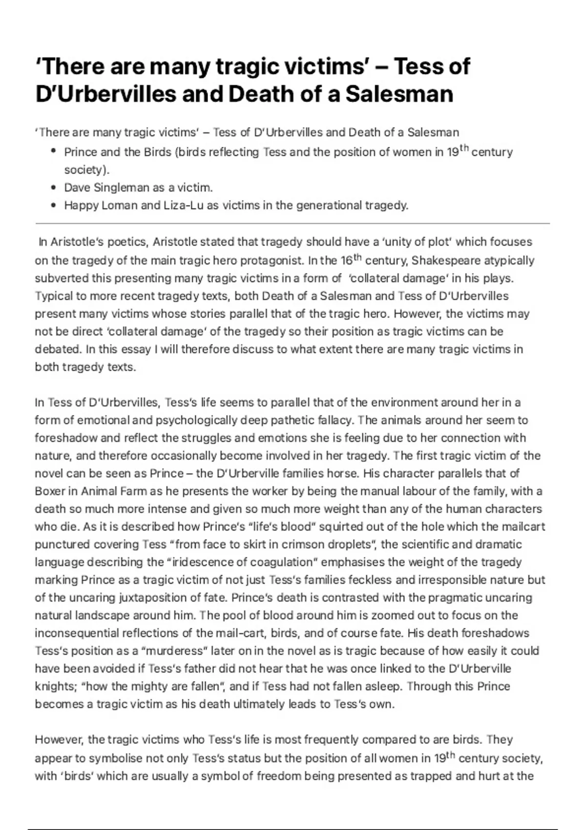 Typical to more recent tragedy texts, both Death of a Salesman and Tess of DʼUrbervilles