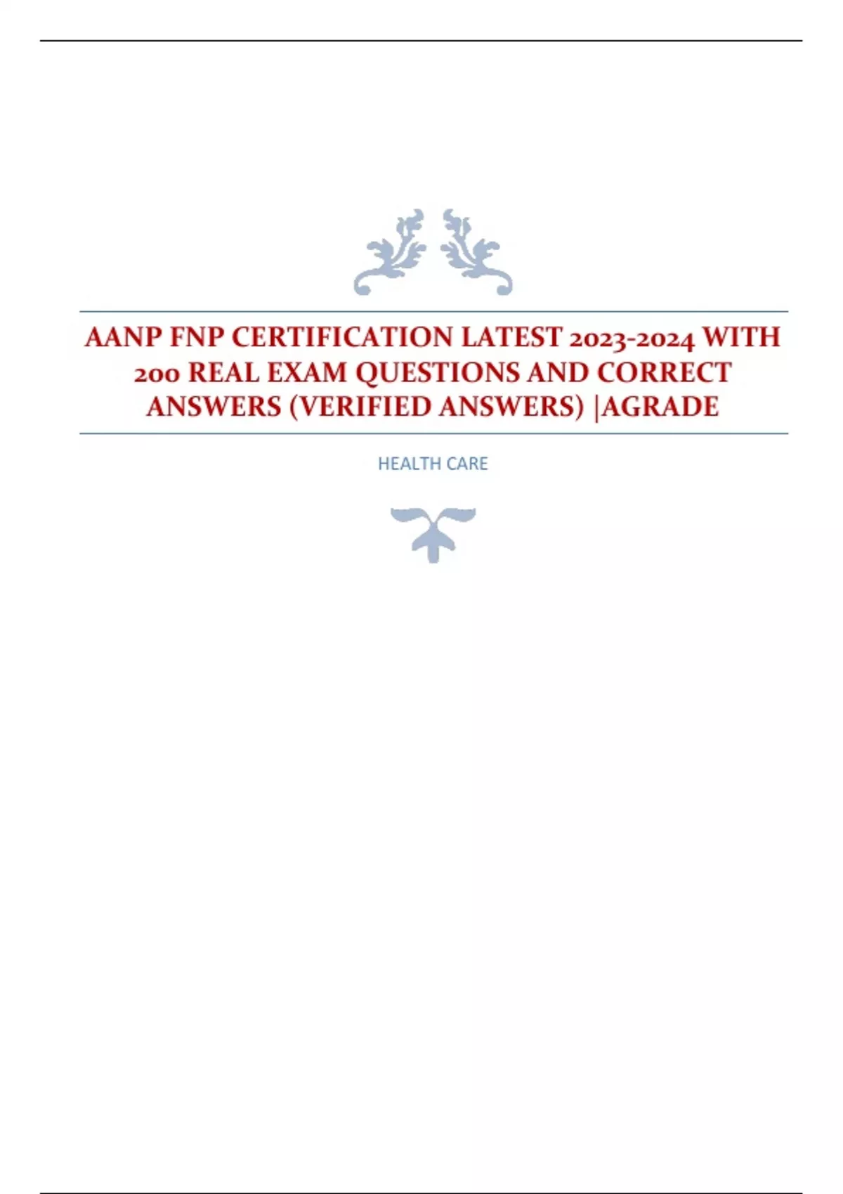 AANP FNP CERTIFICATION LATEST WITH 200 REAL EXAM QUESTIONS AND CORRECT ANSWERS (VERIFIED ANSWERS) |AGRADE AMERICAN ASSOCIATION OF NURSE PRACTITIONERS NURSING Family Nurse Practitioner