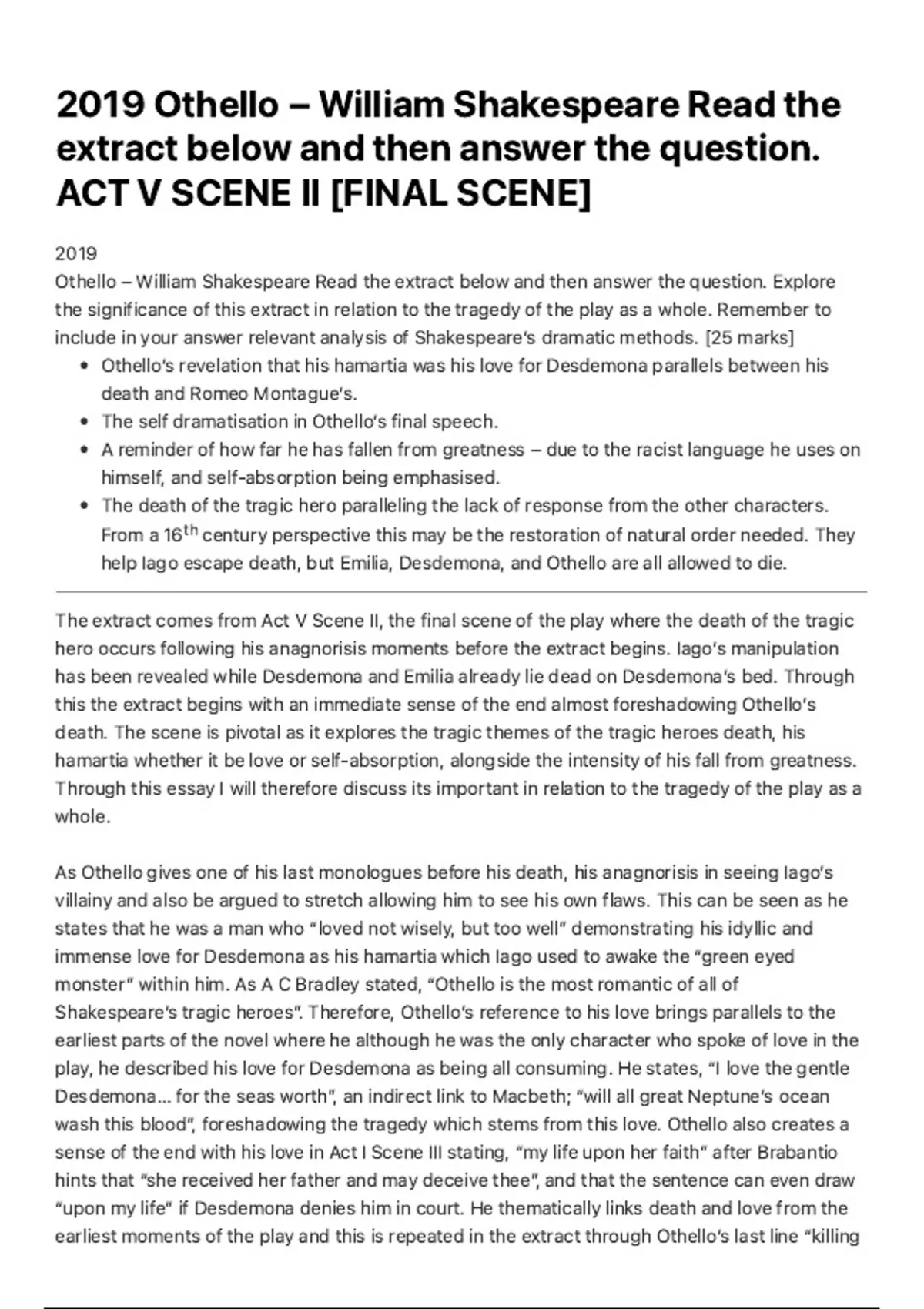 Othello – William Shakespeare Read the extract below and then answer the question. Explore