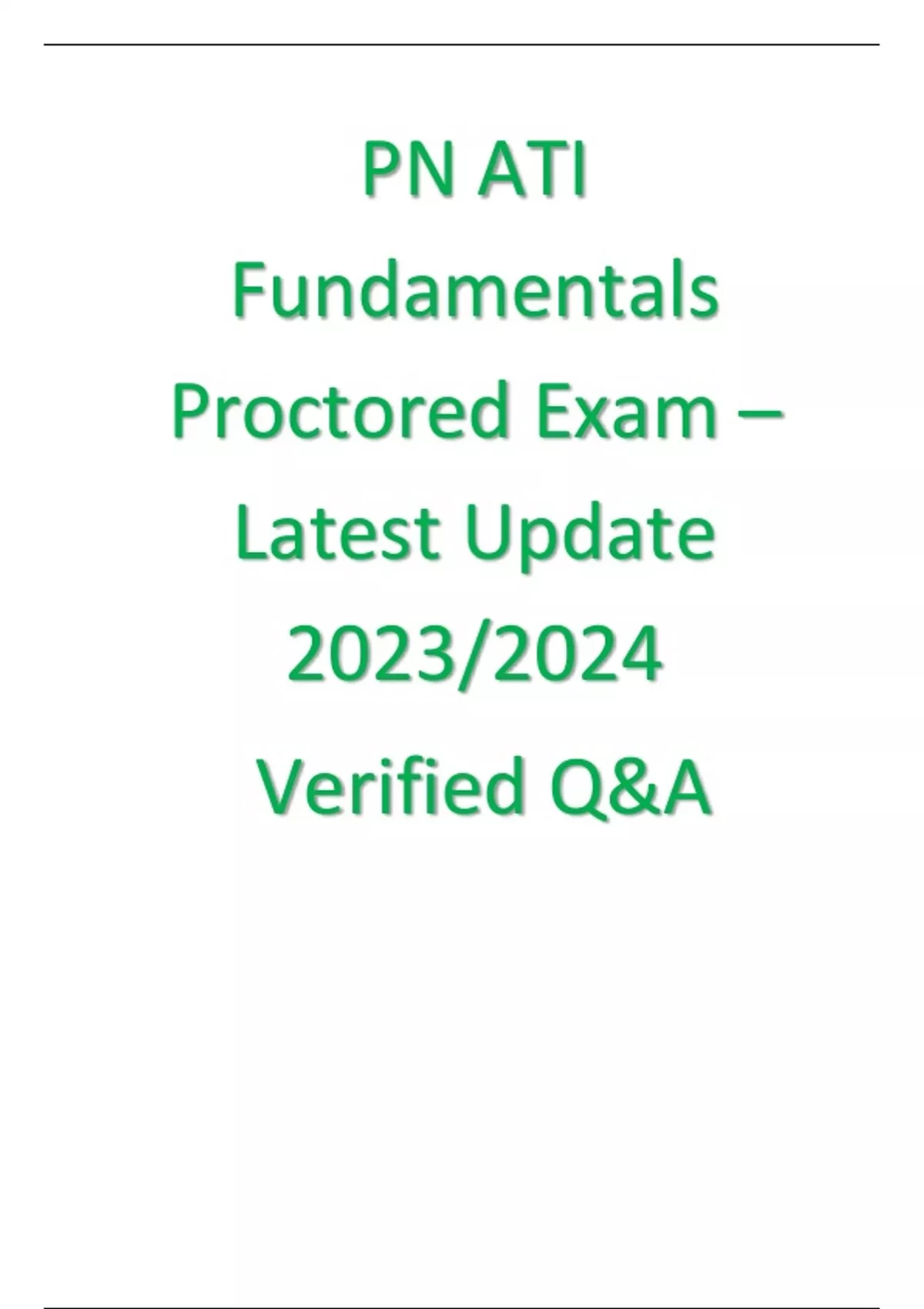 PN ATI Fundamentals Proctored Exam – Latest Update 2023/2024 Verified Q&A