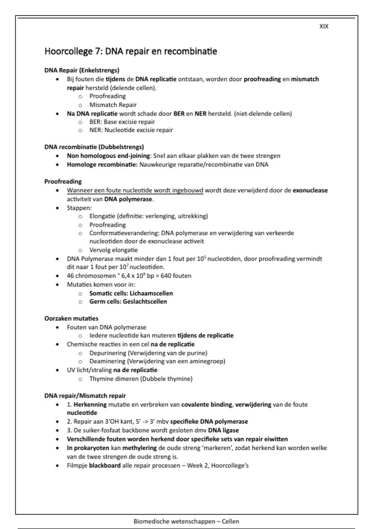 Hoorcollege 7: DNA repair en recombinatie