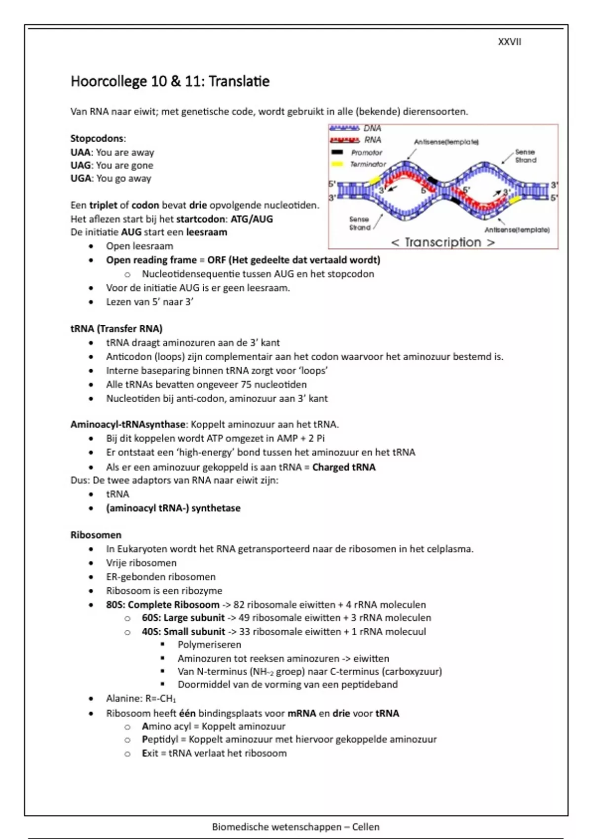 Alle behandelde stof uit het tiende en elfde hoorcollege van het vak 'Cellen'. De translatie van eiwitten bij eukaryoten wordt onder de loep gelegd. Gegeven op de opleiding Biomedische Wetenschappen aan Universiteit Utrecht.