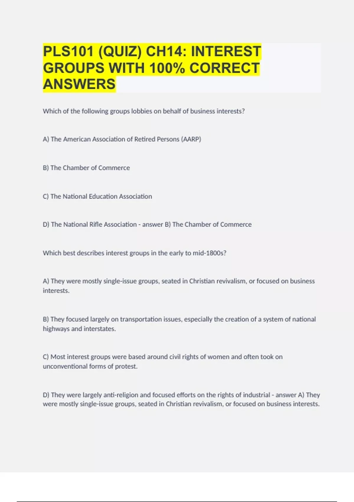 PLS101 (QUIZ) CH14 INTEREST GROUPS WITH 100% CORRECT ANSWERS.