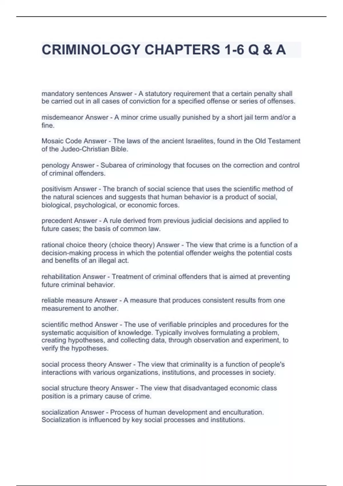 CRIMINOLOGY CHAPTERS 1-6 Q & A