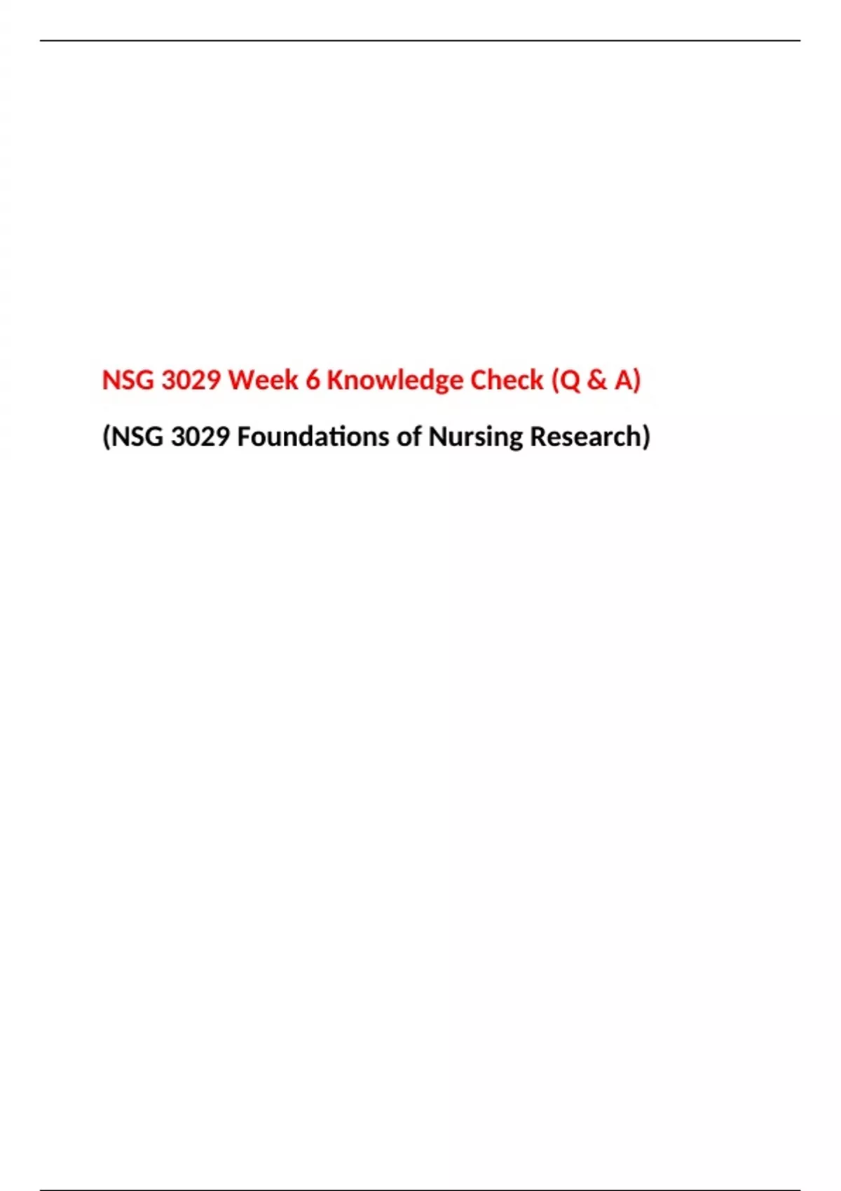 NSG 3029 All Week Knowledge Check, Midterm Exam, Final Exam, NSG 3029 Foundations of Nursing Research, South University.