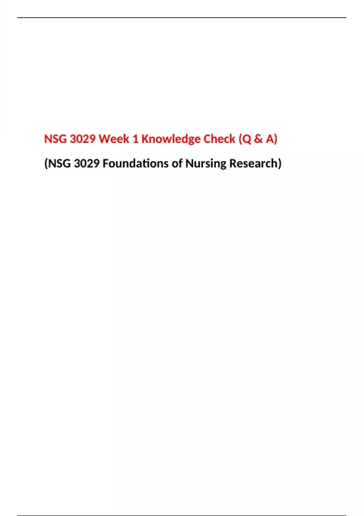 NSG 3029 All Week Knowledge Check, Midterm Exam, Final Exam, NSG 3029 Foundations of Nursing Research, South University.