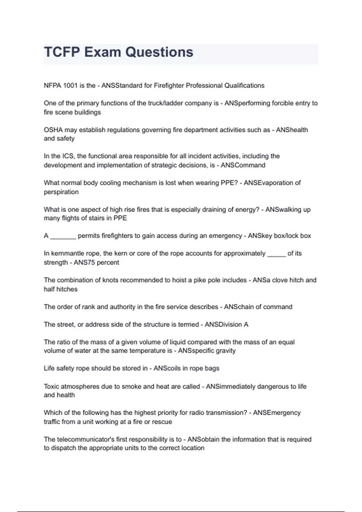 TCFP Exam Questions &Answers 2023 (A+ graded 100% verified)