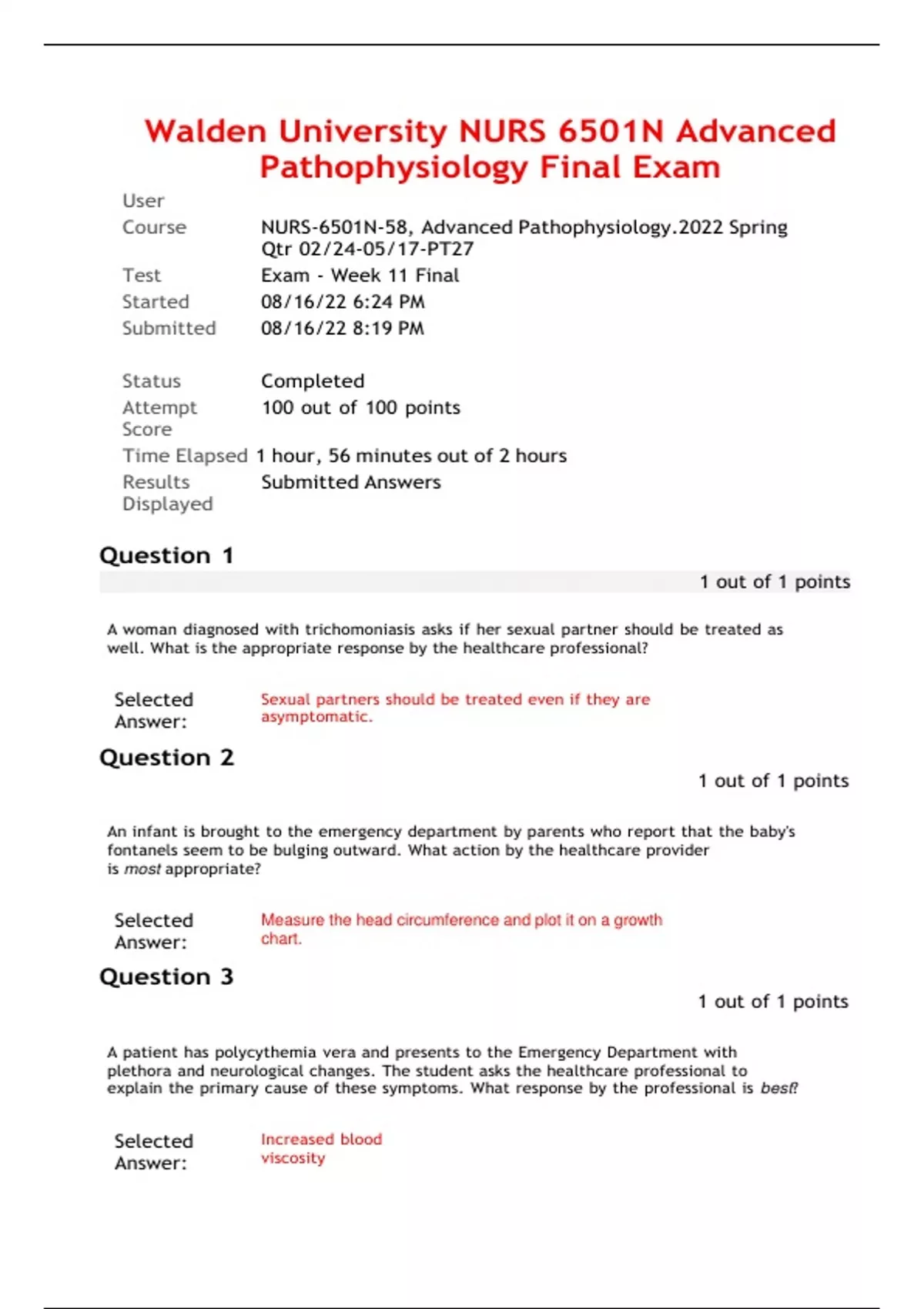 Walden University NURS 6501N Advanced Pathophysiology Final Exam