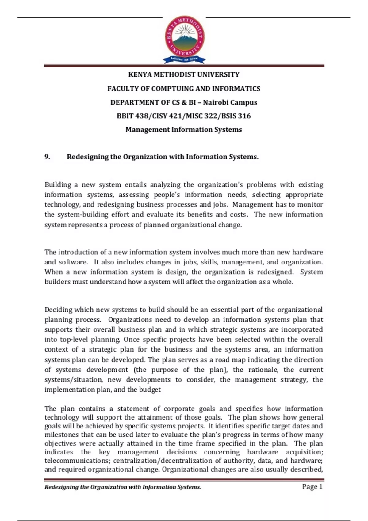Summary 9. Redesigning the Organization with Information Systems. Latest Verified Review 2023 Practice Questions and Answers for Exam Preparation, 100% Correct with Explanations, Highly Recommended, Download to Score A+