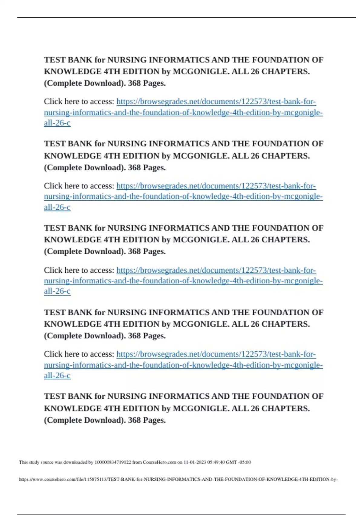 Summary TESTBANK FOR NURSING INFORMATIC AND THE FOUNDATION OF KNOWLEDGE 4TH EDITION