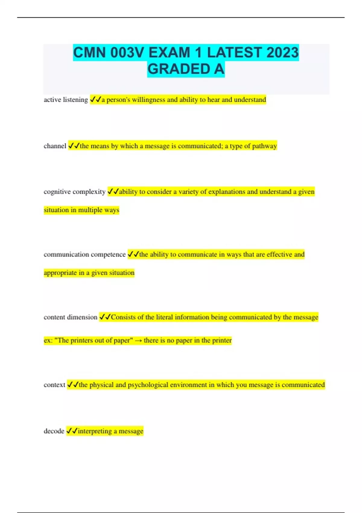 CMN 003V EXAM 1 LATEST 2023 GRADED A