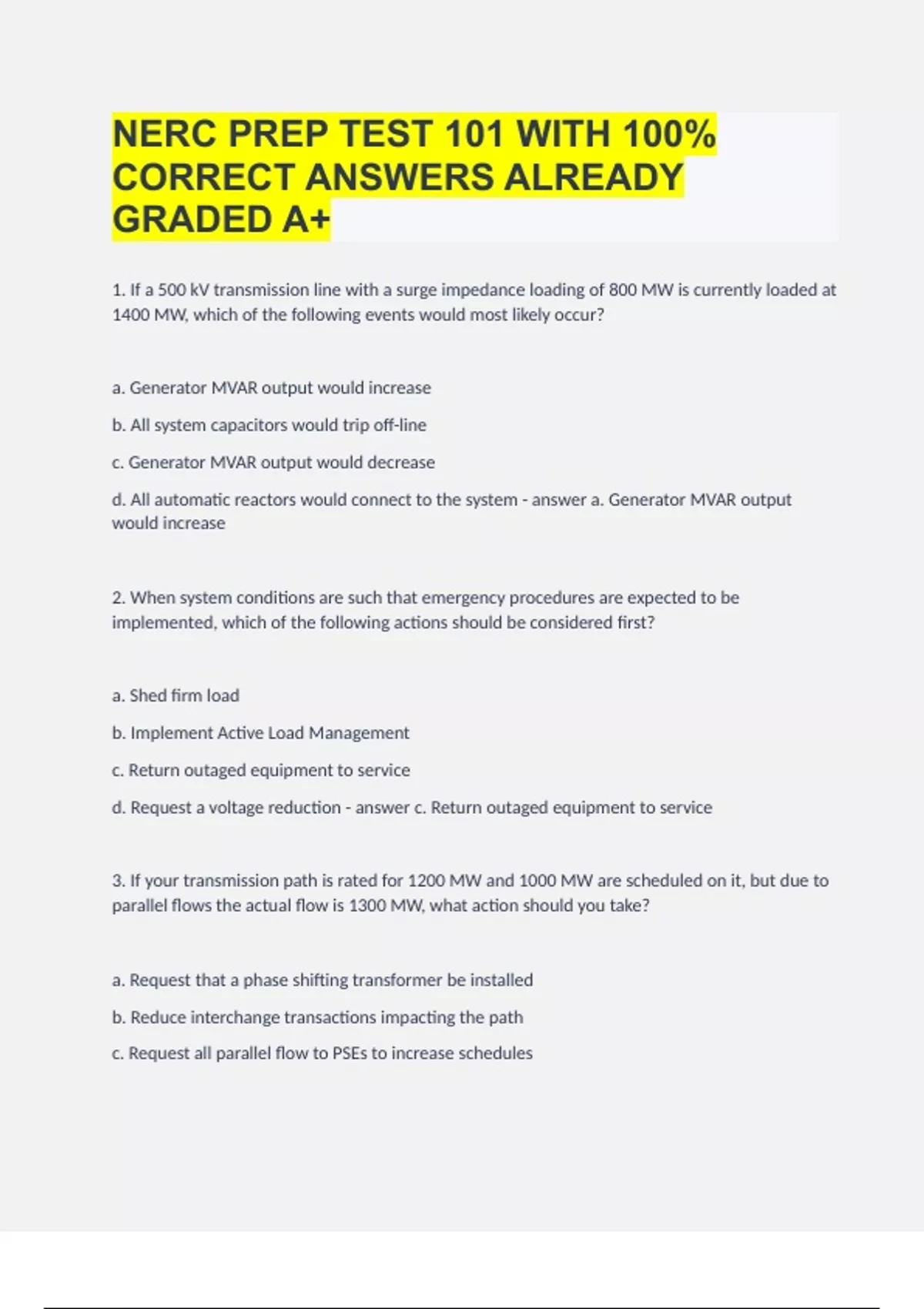 NERC EXAMS COMPLETE PACKAGE DEAL|DOWNLOAD TO PASS