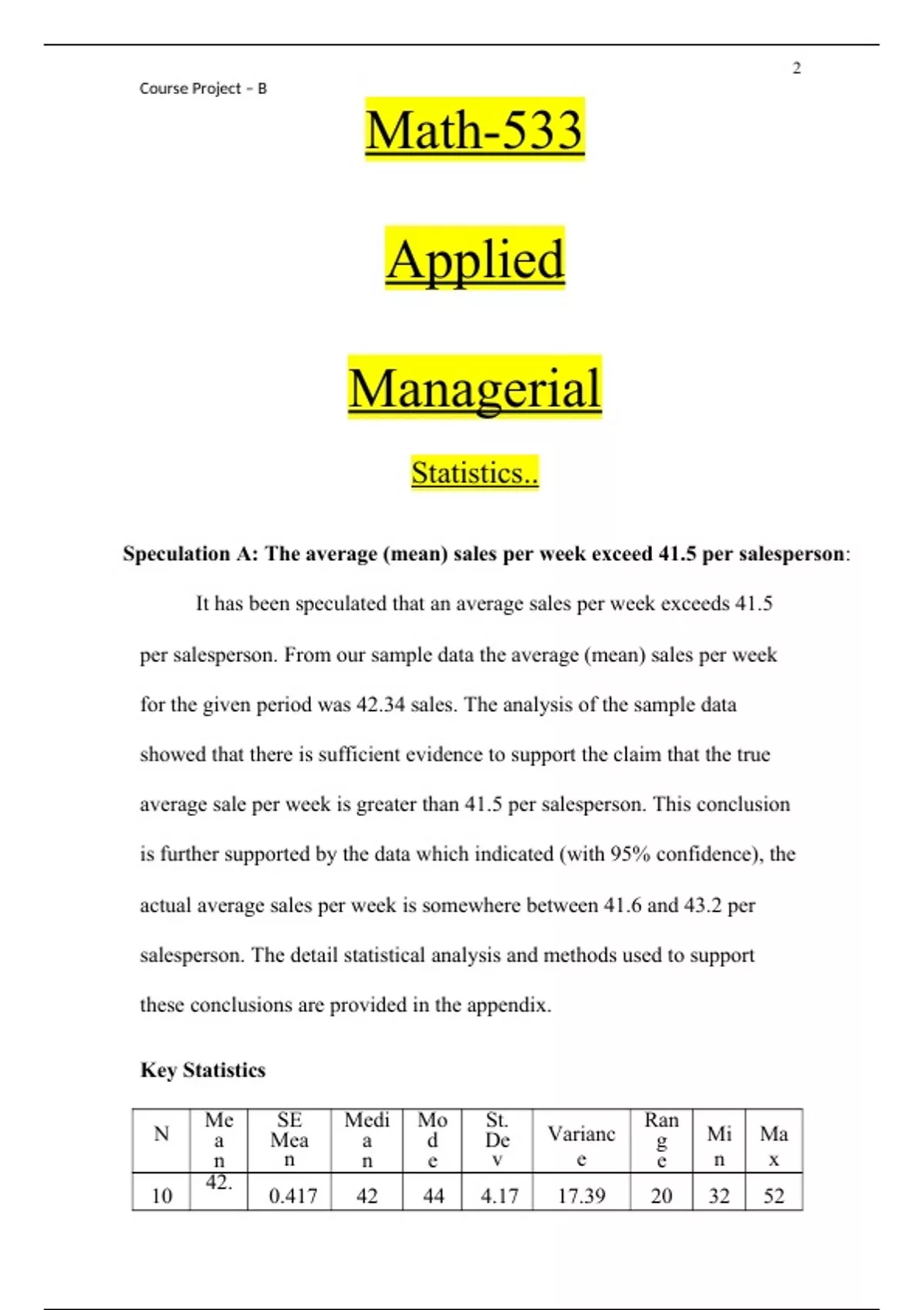 Math-533 Applied Managerial Statistics..Math-533 Applied Managerial Statistics..Math-533 Applied Managerial Statistics..