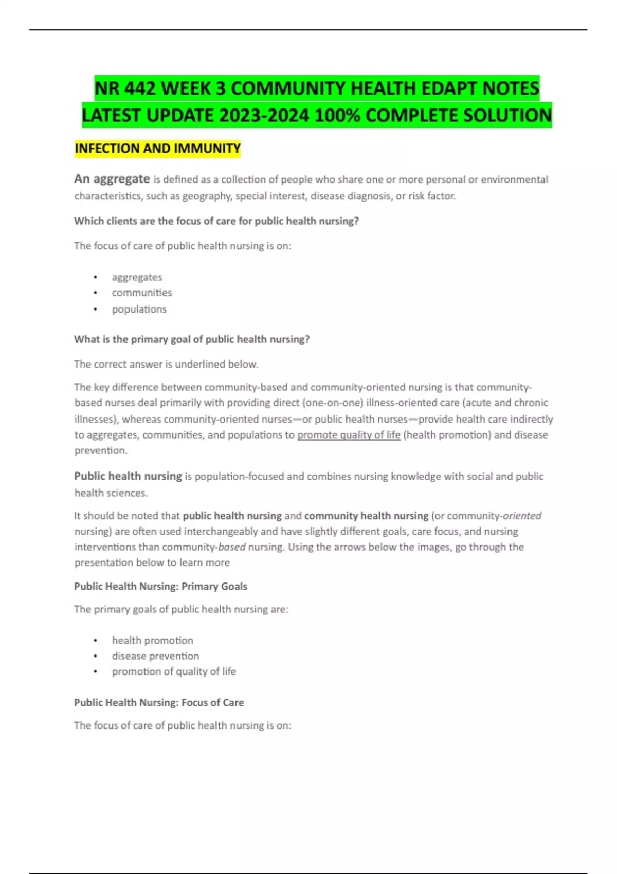 NR 442 WEEK 3 COMMUNITY HEALTH EDAPT NOTES LATEST UPDATE % COMPLETE SOLUTION
