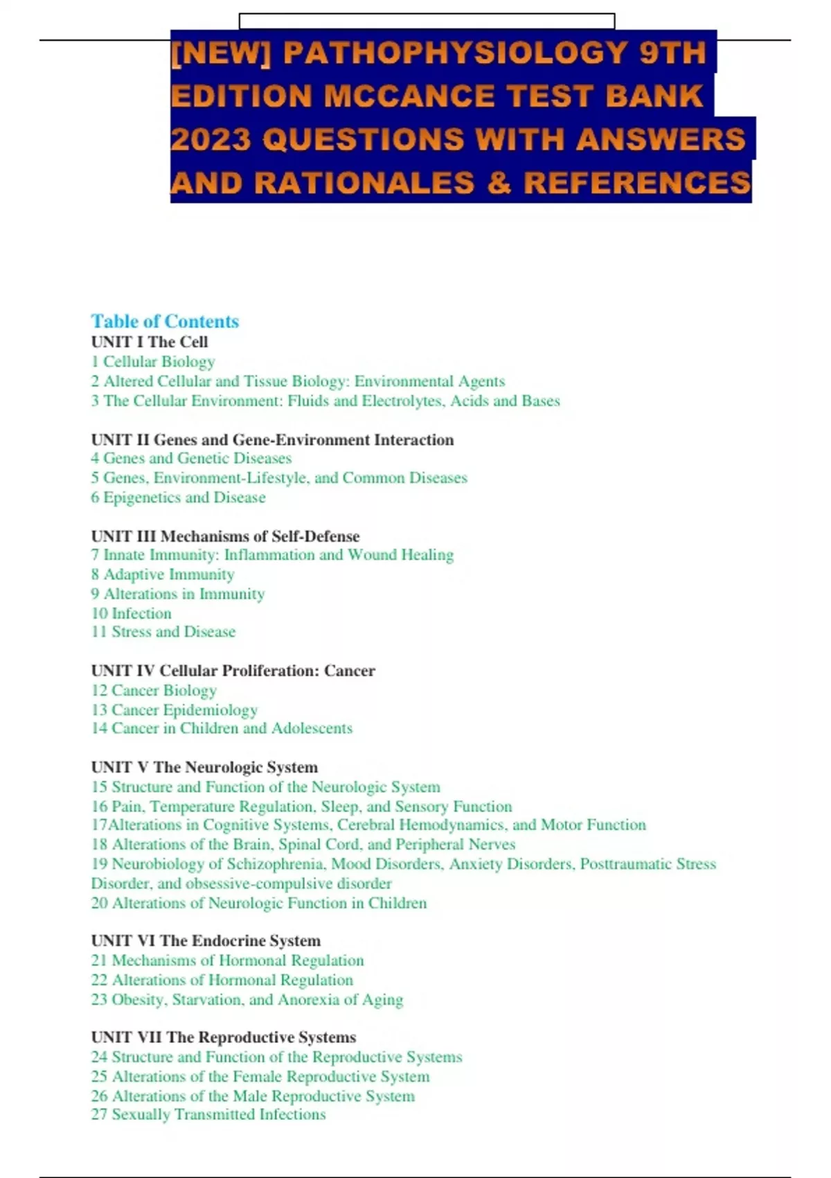 [NEW] PATHOPHYSIOLOGY 9TH EDITION MCCANCE TEST BANK 2023 QUESTIONS WITH ANSWERS AND RATIONALES & REFERENCES
