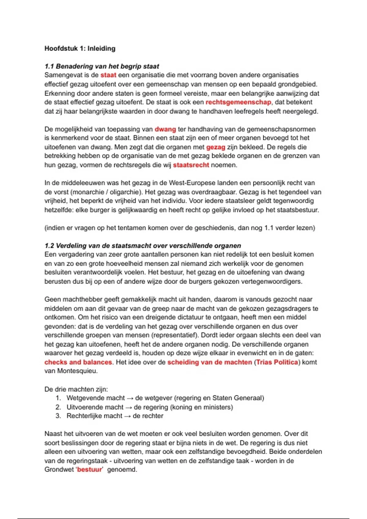 1.2 Verdeling van de staatsmacht over verschillende organen