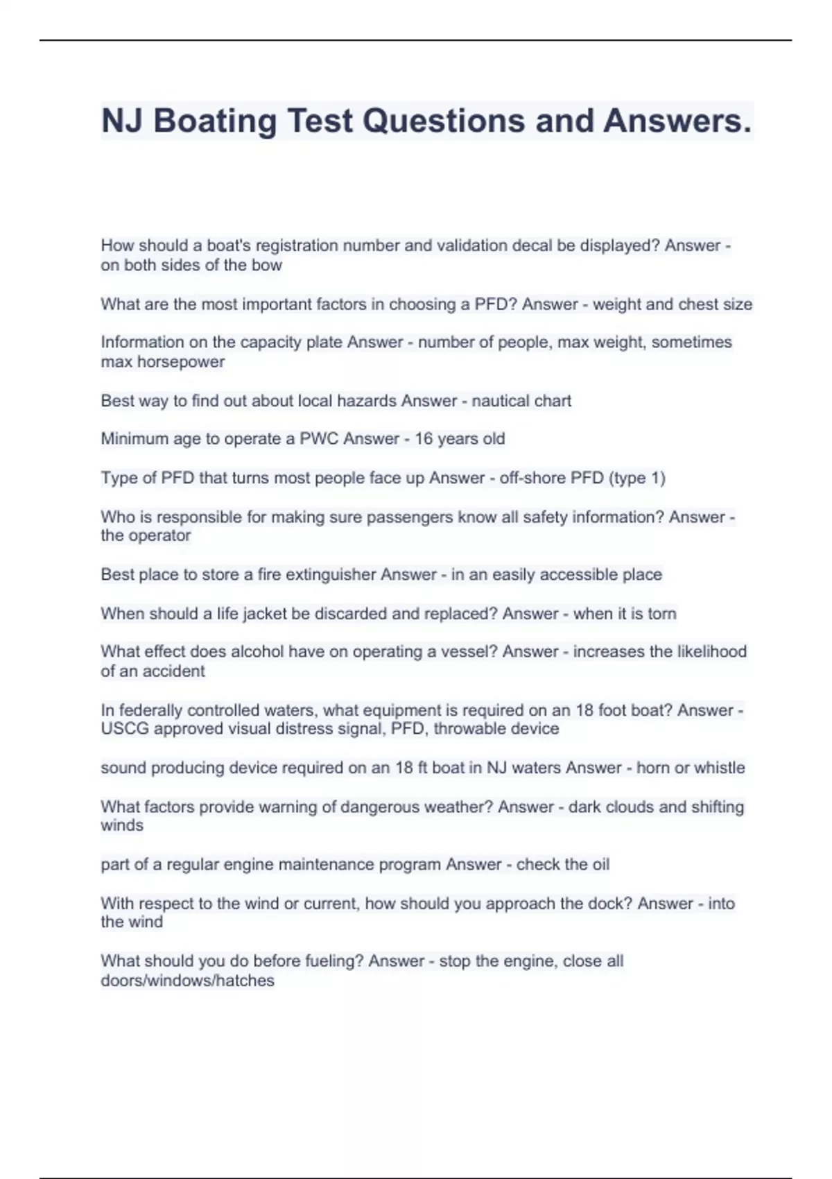 NJ Boating Test Questions and Answers.