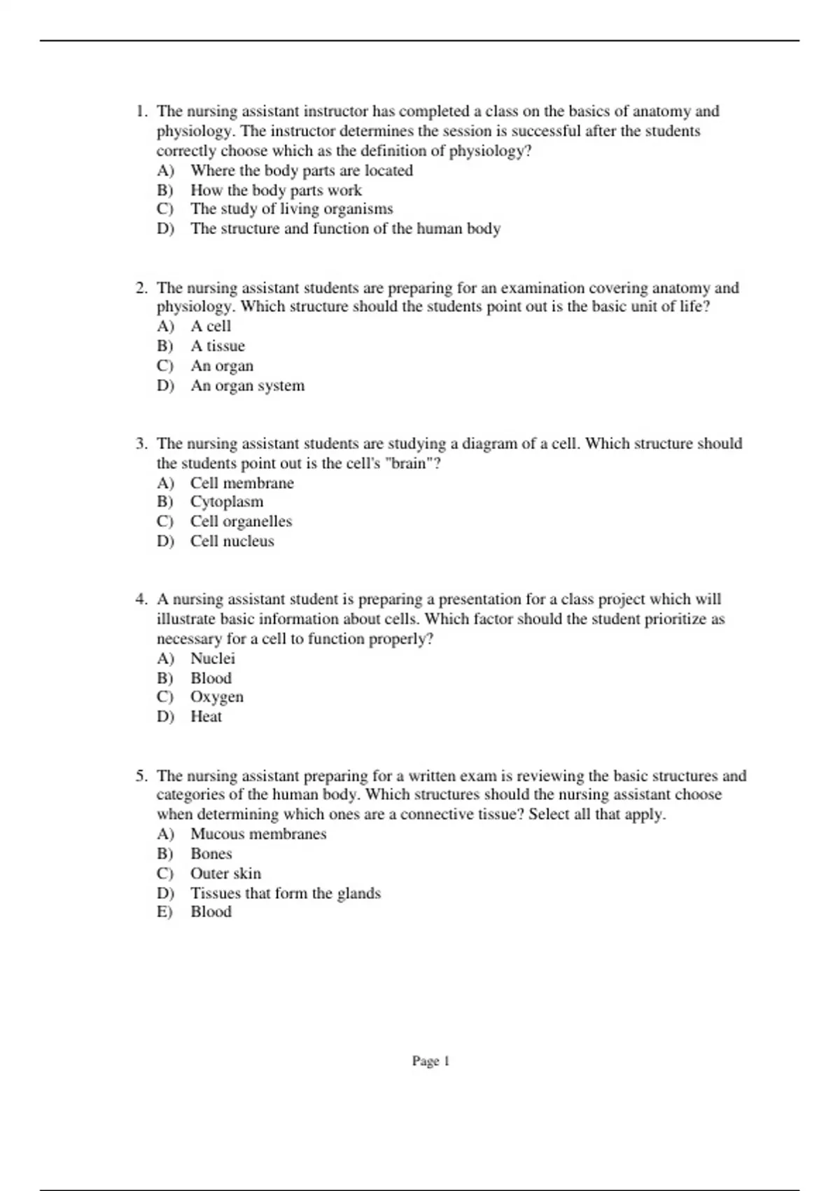 CNA EXAM. BODY STRUCTURE AND FUNCTION.
